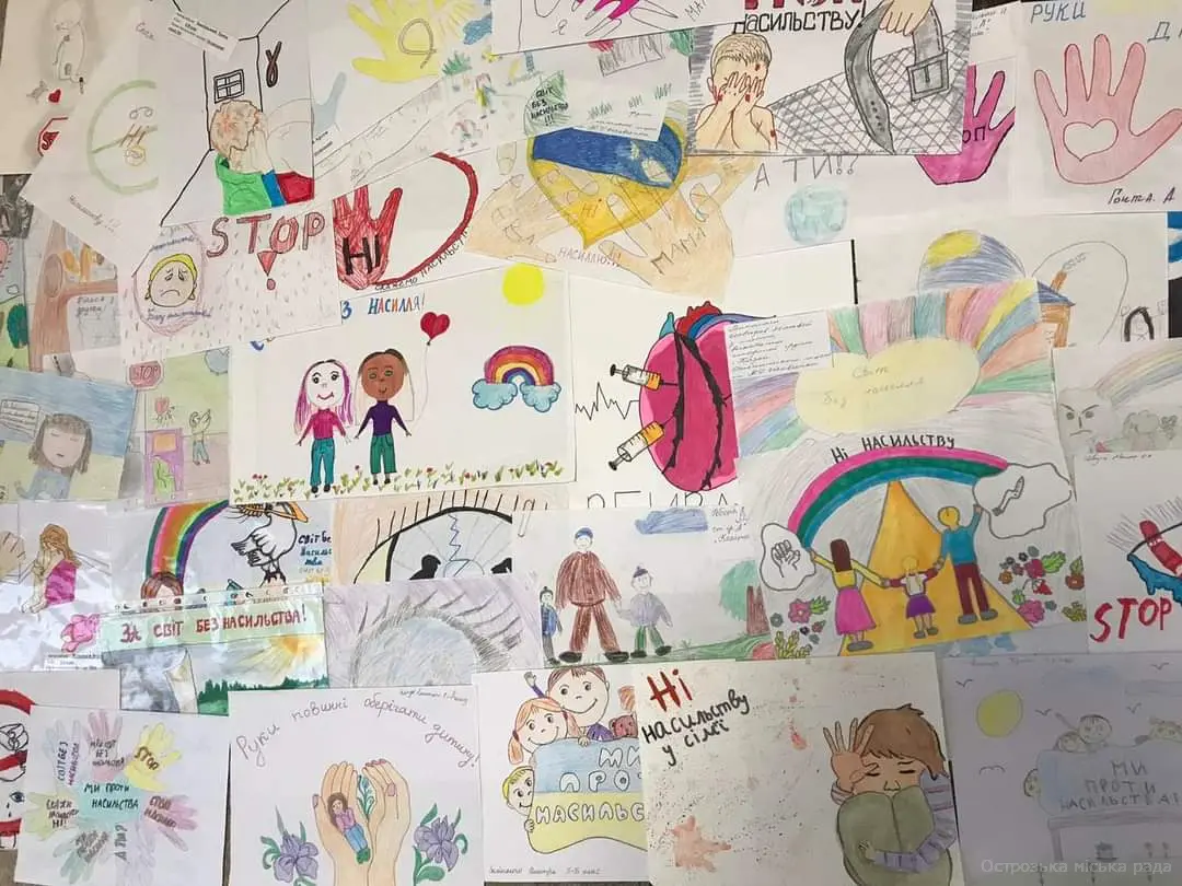 Щорічно Острозький міський центр соціальних служб бере участь у Всеукраїнській акції "16 днів проти насильства". Серед заходів, спрямованих на протидію та профілактику випадків насильства в сім'ї, було проведено конкурс дитячих малюнків "Світ без насильства очима дітей".