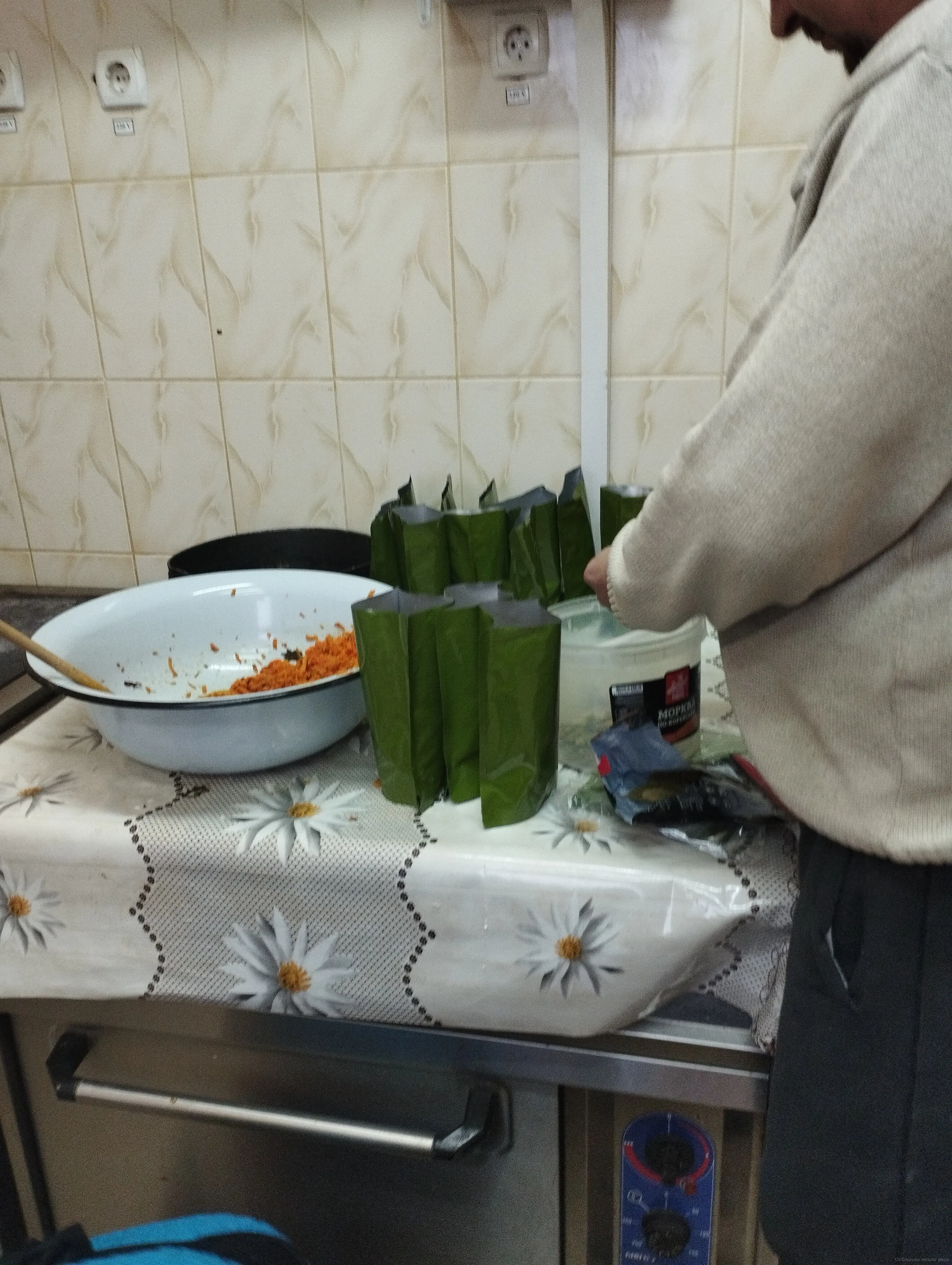 Під час розмови волонтерка разом зі своїми колегами готувала чергову партії чанахів та запаковували їх в ось в такі пакети.