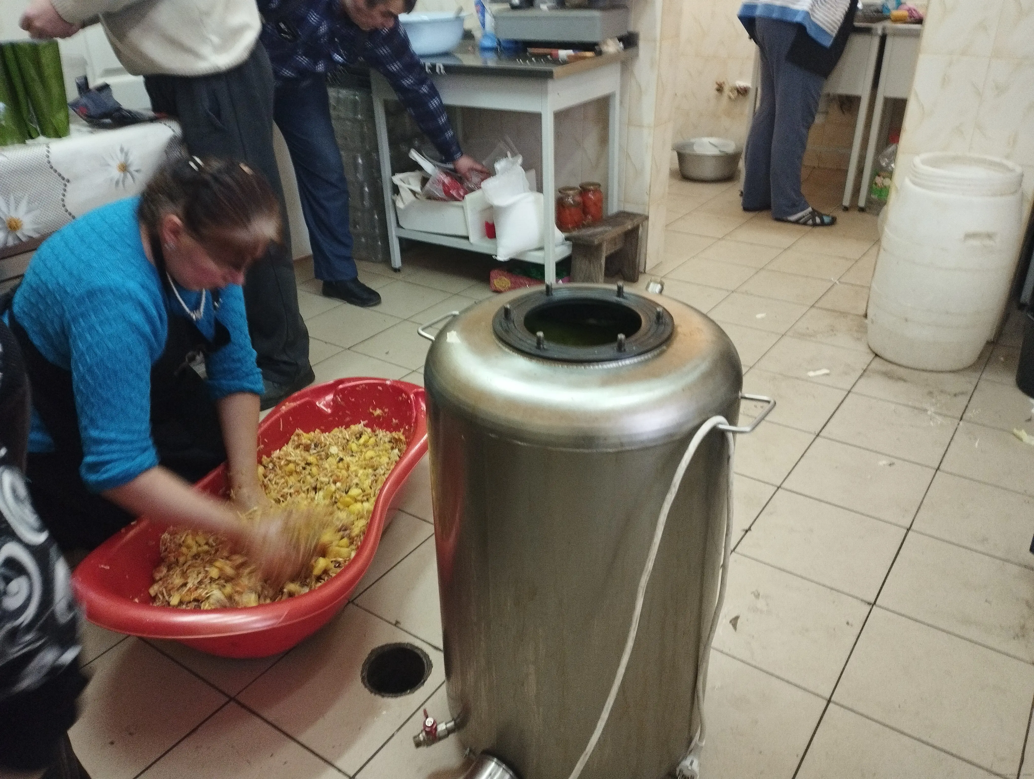 «24 лютого, сказати, що кожен прокинувся шокованим, то це нічого не сказати. 26 числа, телефонують мої куми Віктор та Наталія Токарчуки, вони займаються вирощуванням свиней. Зарізали дві свині, і вирішили, що будемо робити тушонки. Першу партію почали виготовляти в  себе вдома. В них автоклав, в мене, в сусідів. І так ми назбирали сім автоклавів. Перший місяць робили тільки тушонки, а далі вирішили, що м'ясо дуже добре, але хочеться гарніру. І почали робити ще й каші.