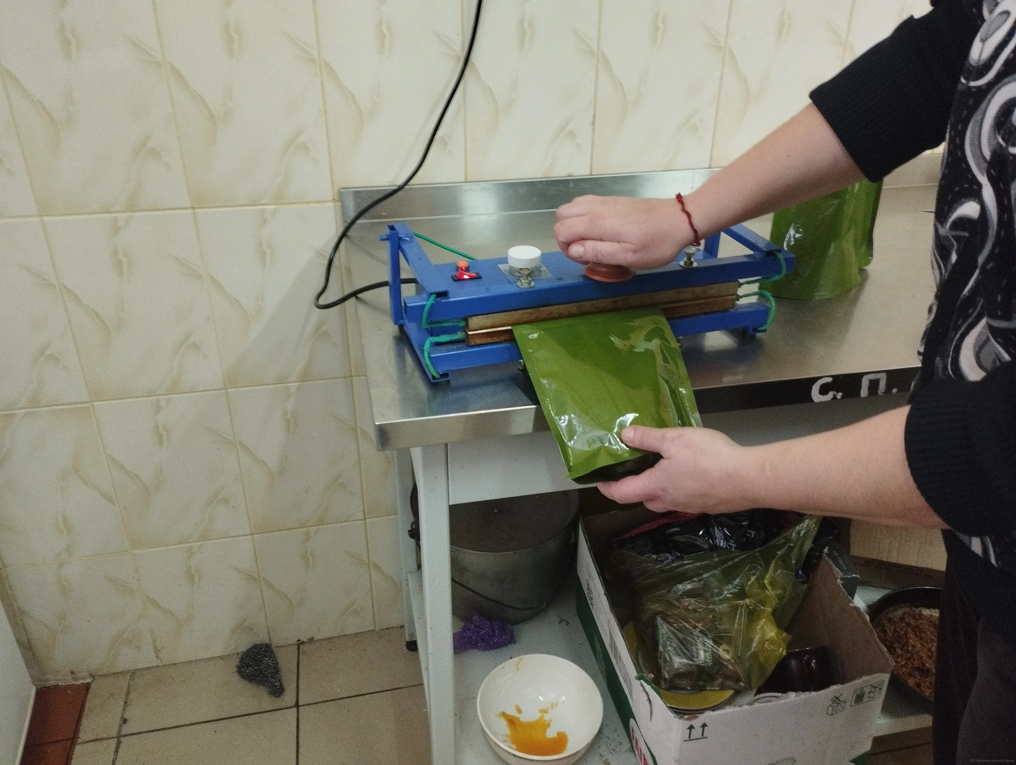 «Одразу, ми все закривали в банки, але і банки мають здатність закінчуватись і з транспортуванням незручно. Ми знайшли в інтернеті, що у нас на Сумщині роблять ось такі пакети для приготування їжі в автоклаві.