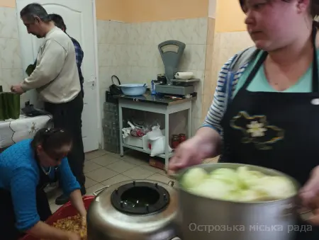 «Допомога надходить звідусіль. Допомагають підприємці, переважну більшість чиїх імен я навіть і не знаю. Підвозять м’ясо, цукор, борошно, капусту, моркву, цибулю, картоплю.    Допомагають місцеві жителі, хто чим може (гриби, яблука, ми їх чистимо та робимо повидло). Також осторонь не залишається Острозька міська рада, вона постійно надає допомогу коштами, крупами, олією, кришками та іншим. На початку війни, Острозька міська рада масово надавала м’ясо птиці для виготовлення каш. Якщо звертаєшся - допомагають, хто стукає, тому відкривають», - сміється Ярослава.
