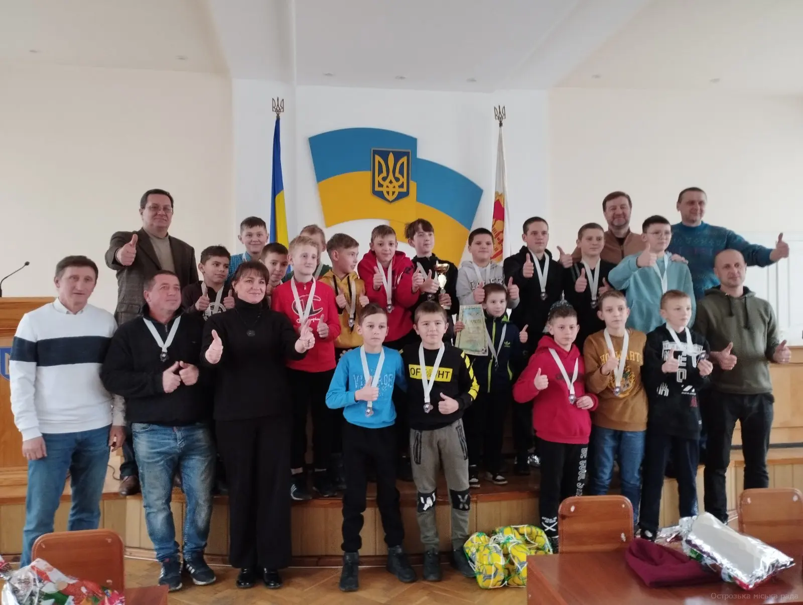 Привітати їх в Острог приїхали Хахльов Олексій Володимирович, голова Рівненської обласної асоціації футболу, та Коломис Ярослав Дмитрович, голова громадської організації «Рівненська районна федерація футболу». Вони нагородили юних спортсменів та тренера медалями, а команду – грамотою і кубком за третє місце. Також від Рівненської обласної асоціації футболу Хахльов Олексій Володимирович вручив команді м’ячі, а голова Острозької МТГ Ягодка Юрій Петрович кожному футболісту – солодкі подарунки.