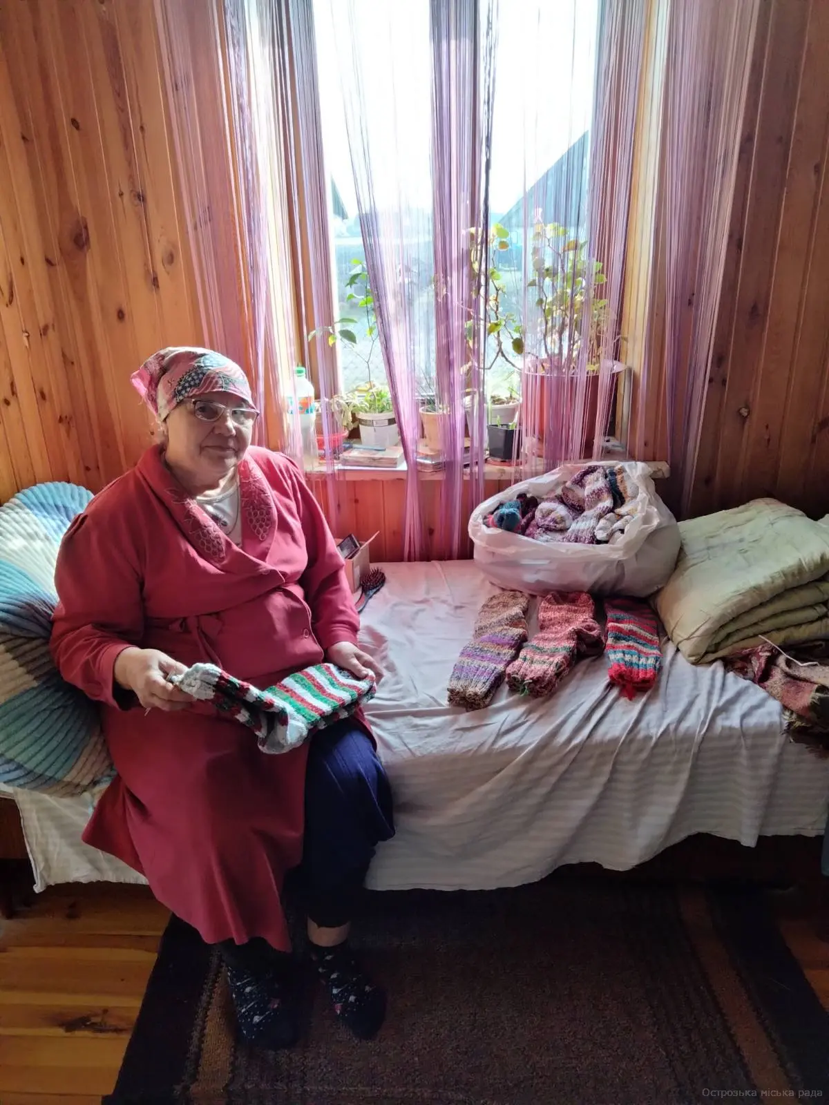 З турботою про захисників: бабуся на Острожчині в'яже шкарпетки для військових.