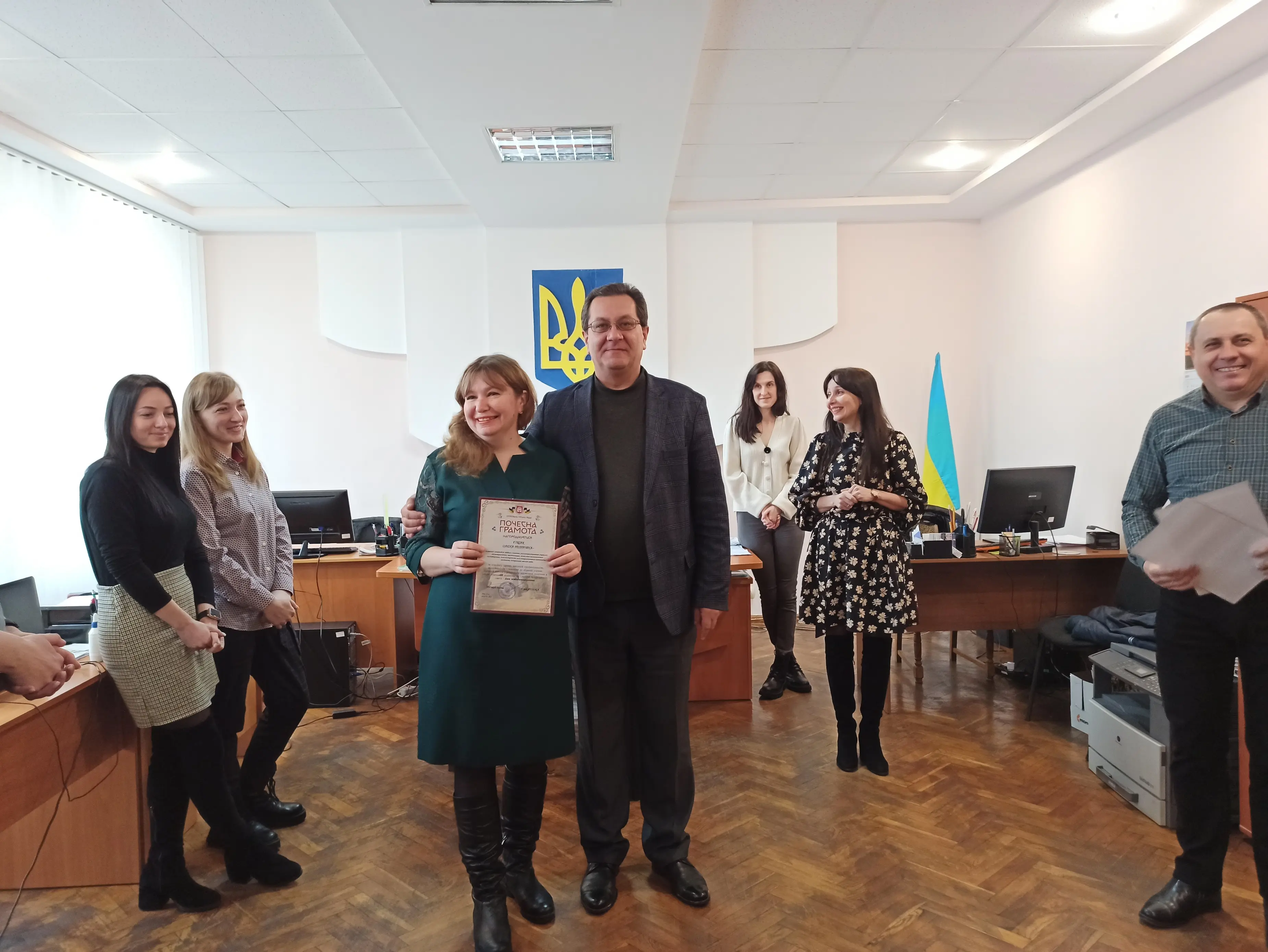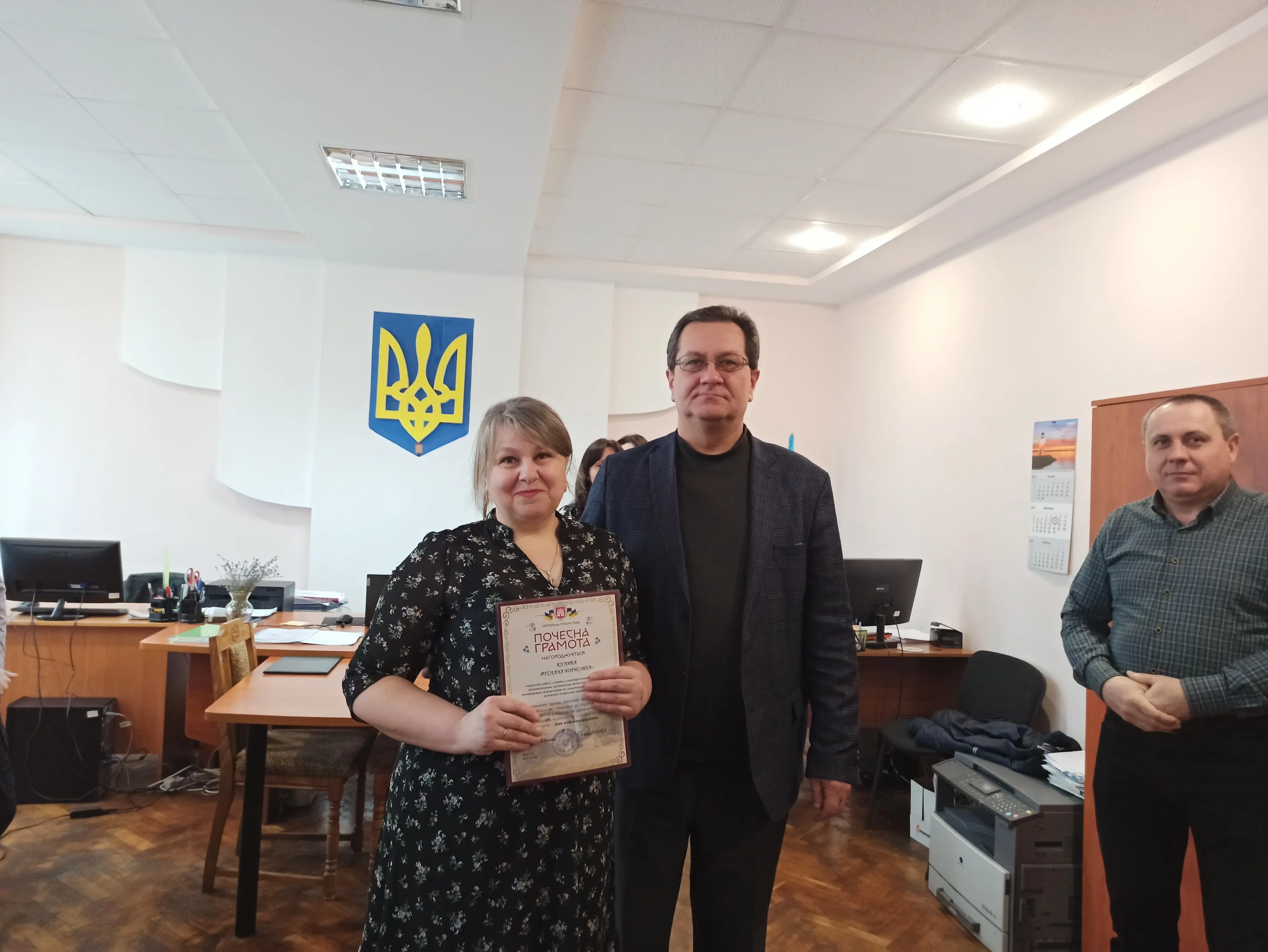 За сумлінну працю, високий професіоналізм, відповідальне ставлення до обраної справи, вагомий внесок у реалізацію державної політики в галузі земельних відносин та з нагоди професійного свята – Дня землевпорядника Почесною грамотою Острозької міської ради нагороджено Олену Гіщак, Ларису Ковбу, Руслану Кулибу.