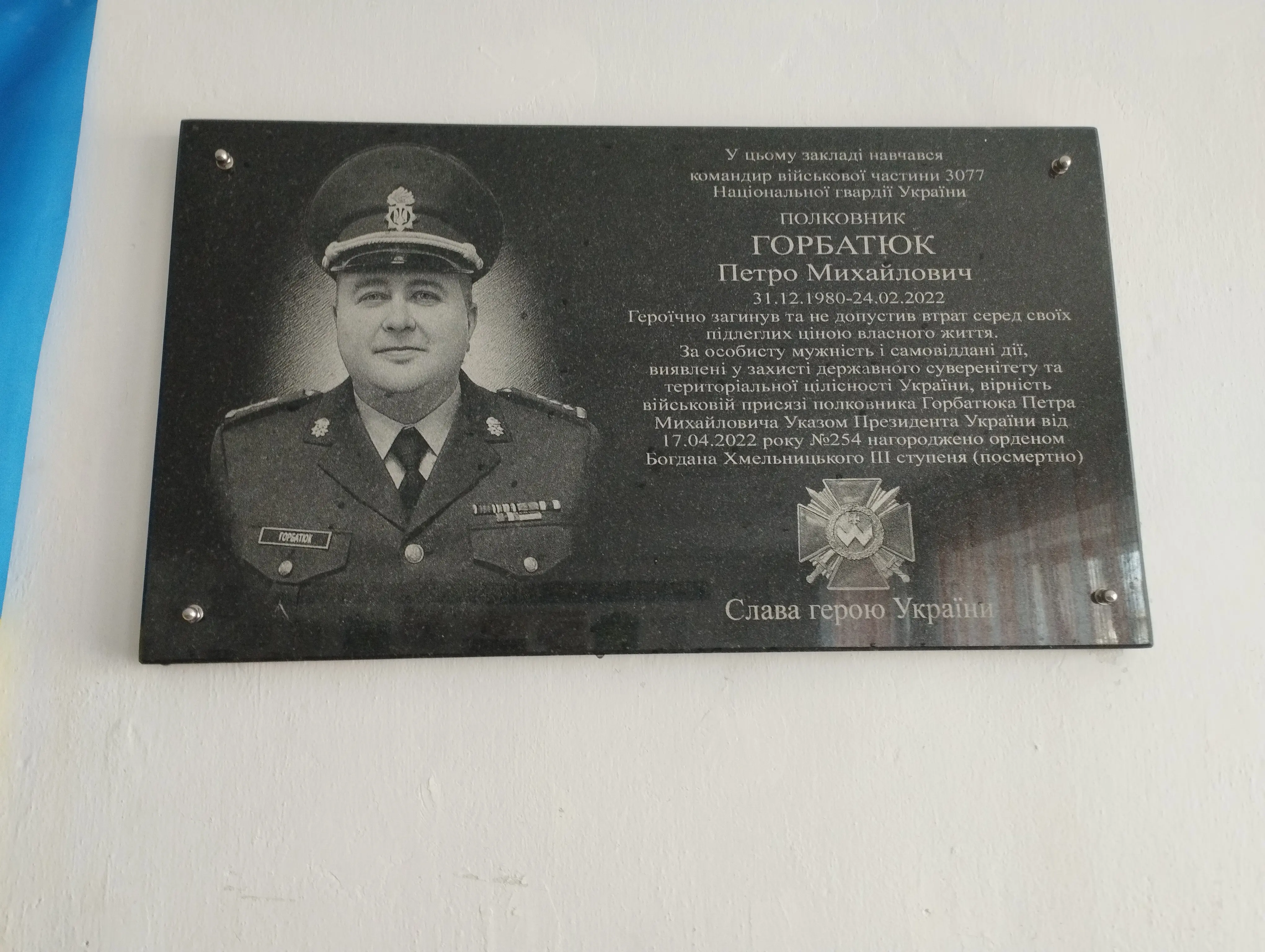Полковник  Горбатюк Петро Михайлович перебував на посаді командира військової частини 3077 Національної Гвардії України з 01.11.2016 по 24.02.2022 року.