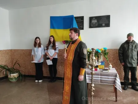 Чин освячення  меморіальної дошки та спільну  молитву  здійснив  капелана військової частини, де служив командиром  Петро Михайлович.