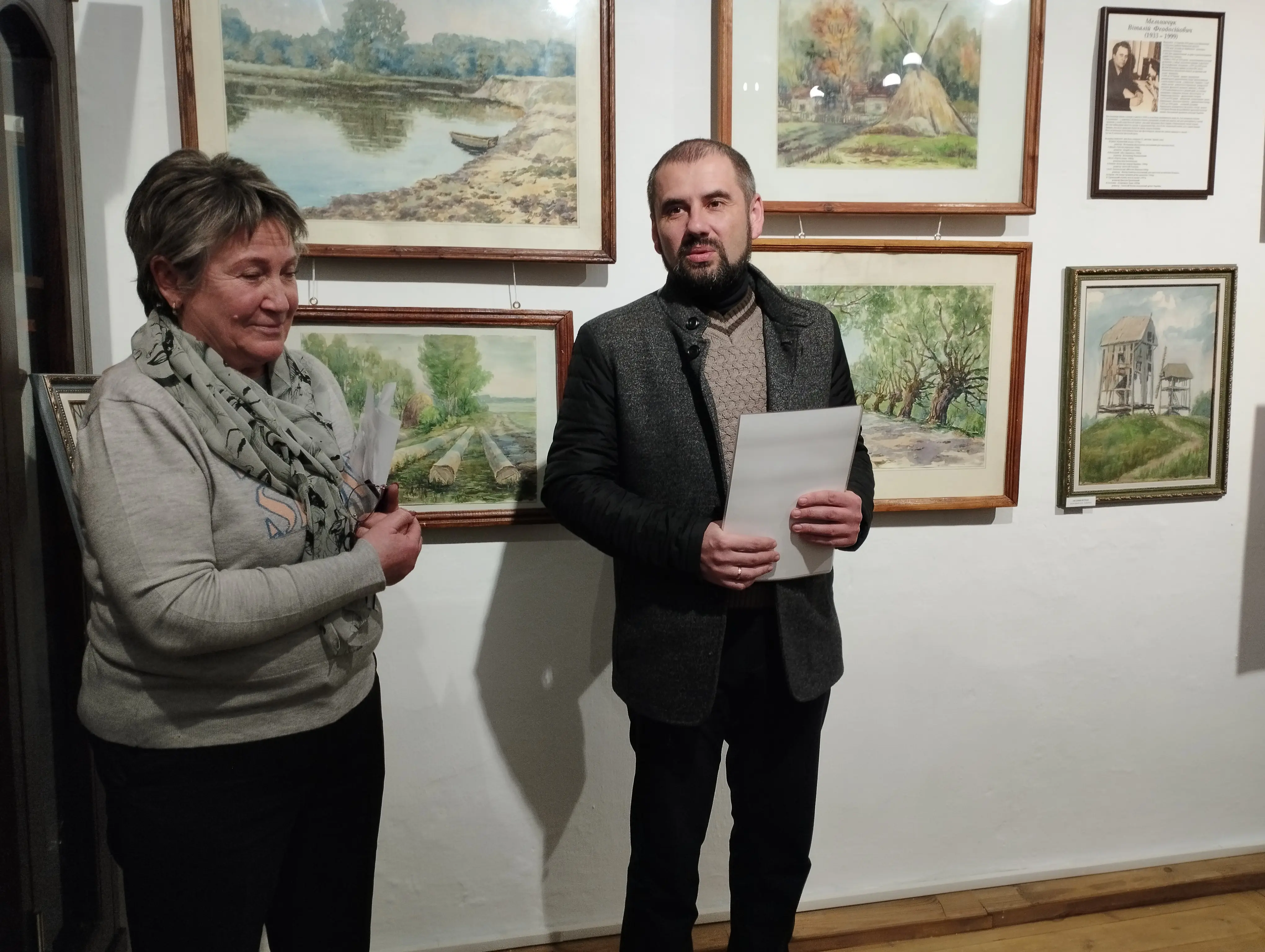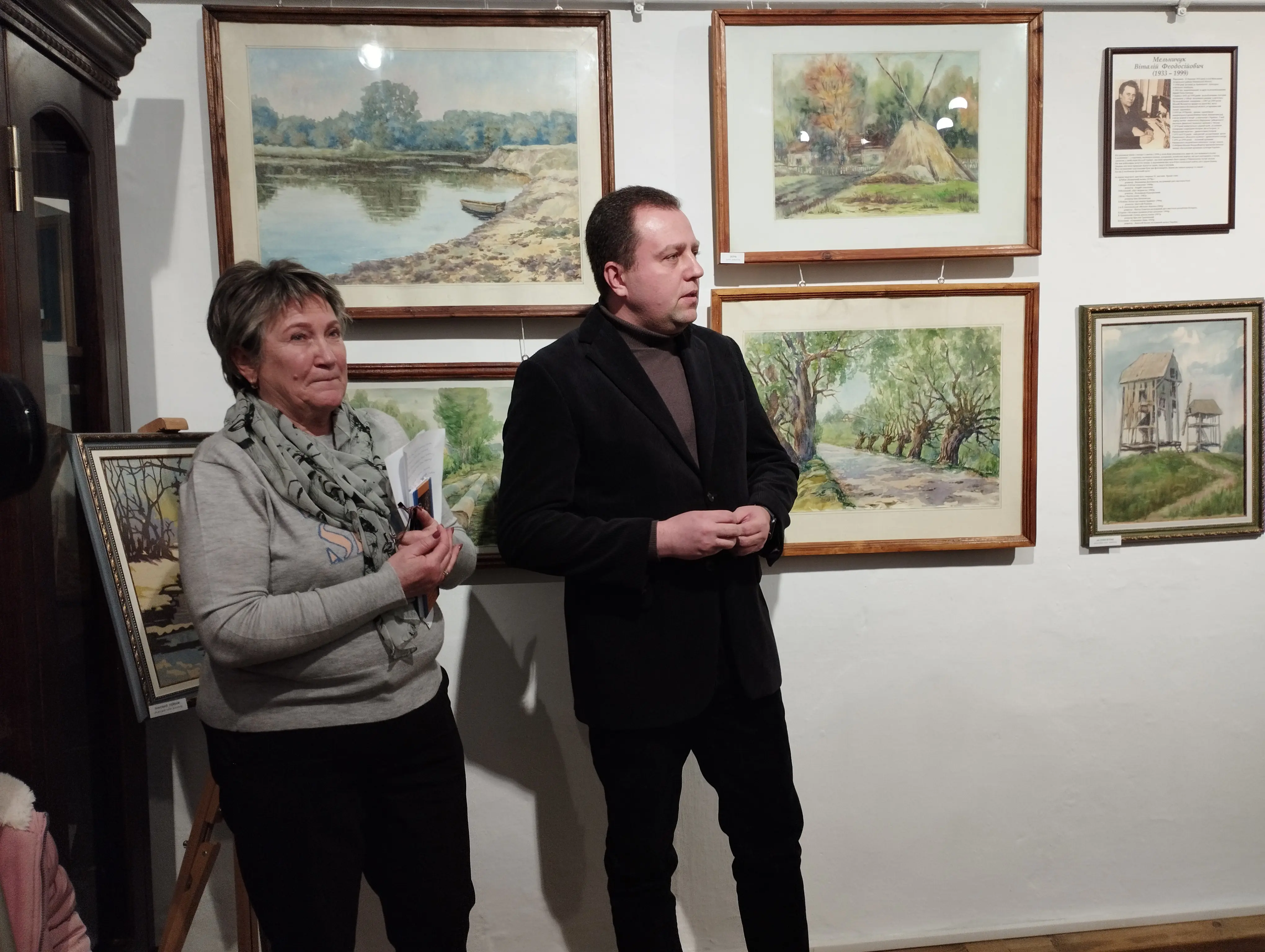 Урочисте відкриття виставки  розпочала завідувачка художнього відділу Державного історико-культурного заповідника м. Острога Людмила Козловська , яка  розповіла про митця, його життя, творчість, громадянську позицію, та подякувала його покійній дружині Лідії Іванівні Мельничук яка передала для музею картини.