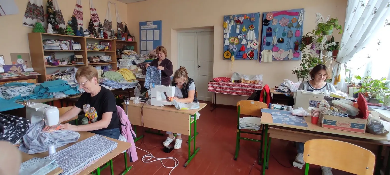 З початку повномаштабної війни, в Могилянівському ліцеї організували швейну артіль, в якій працюють місцеві жінки та внутрішньо переселені.