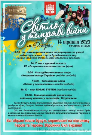 Також, цього дня відбудеться благодійний захід «Світло у темряві війни».