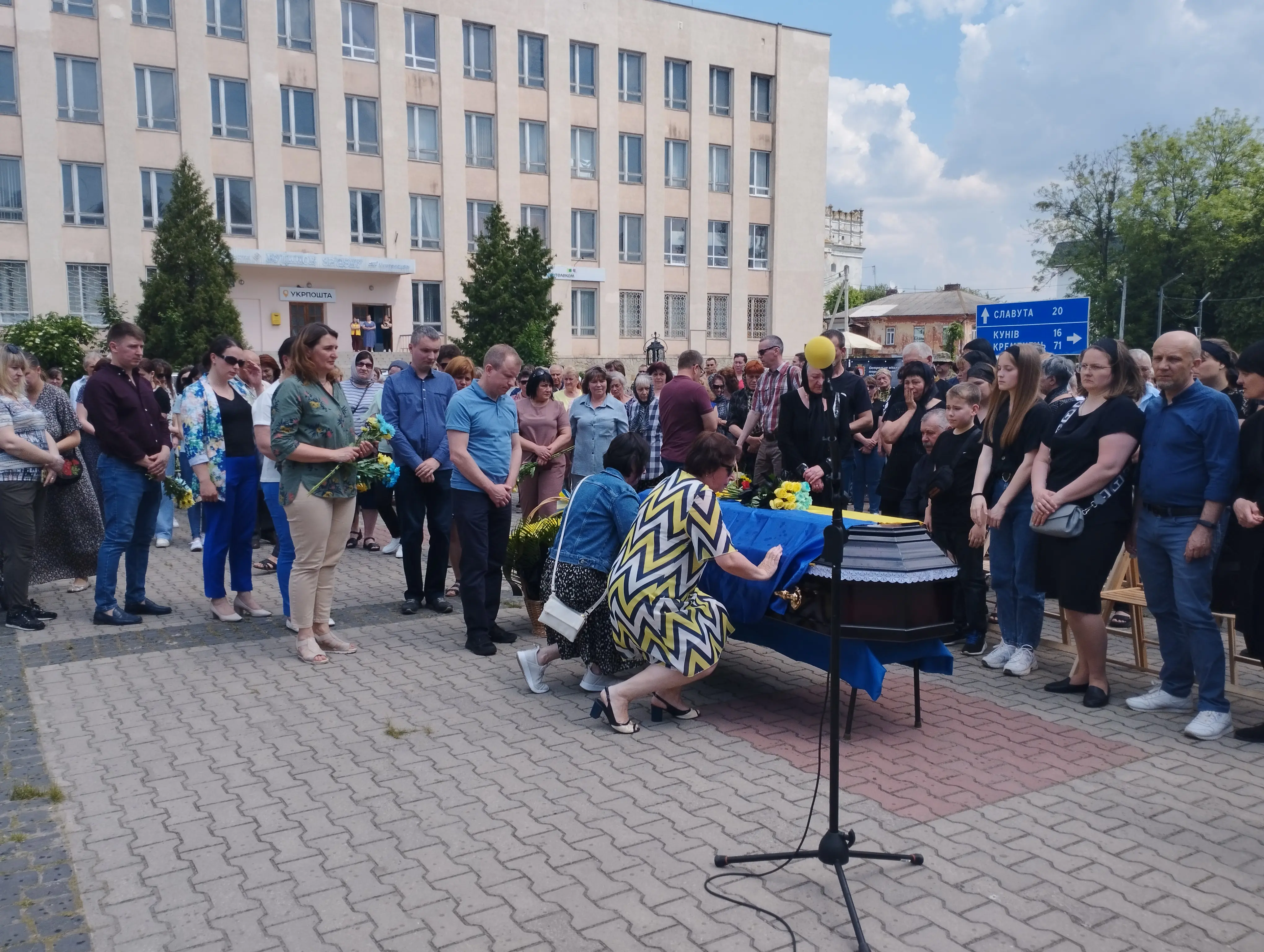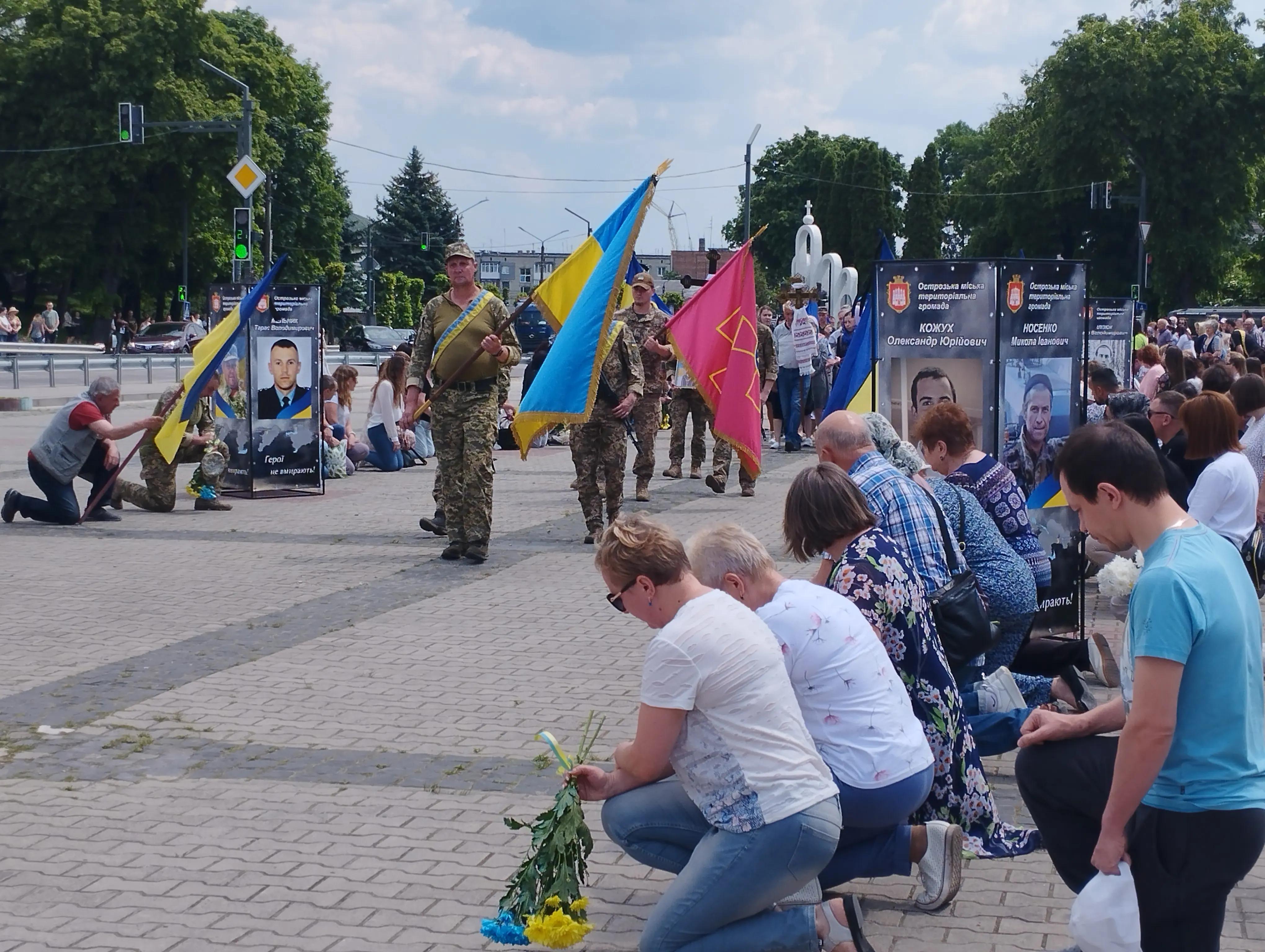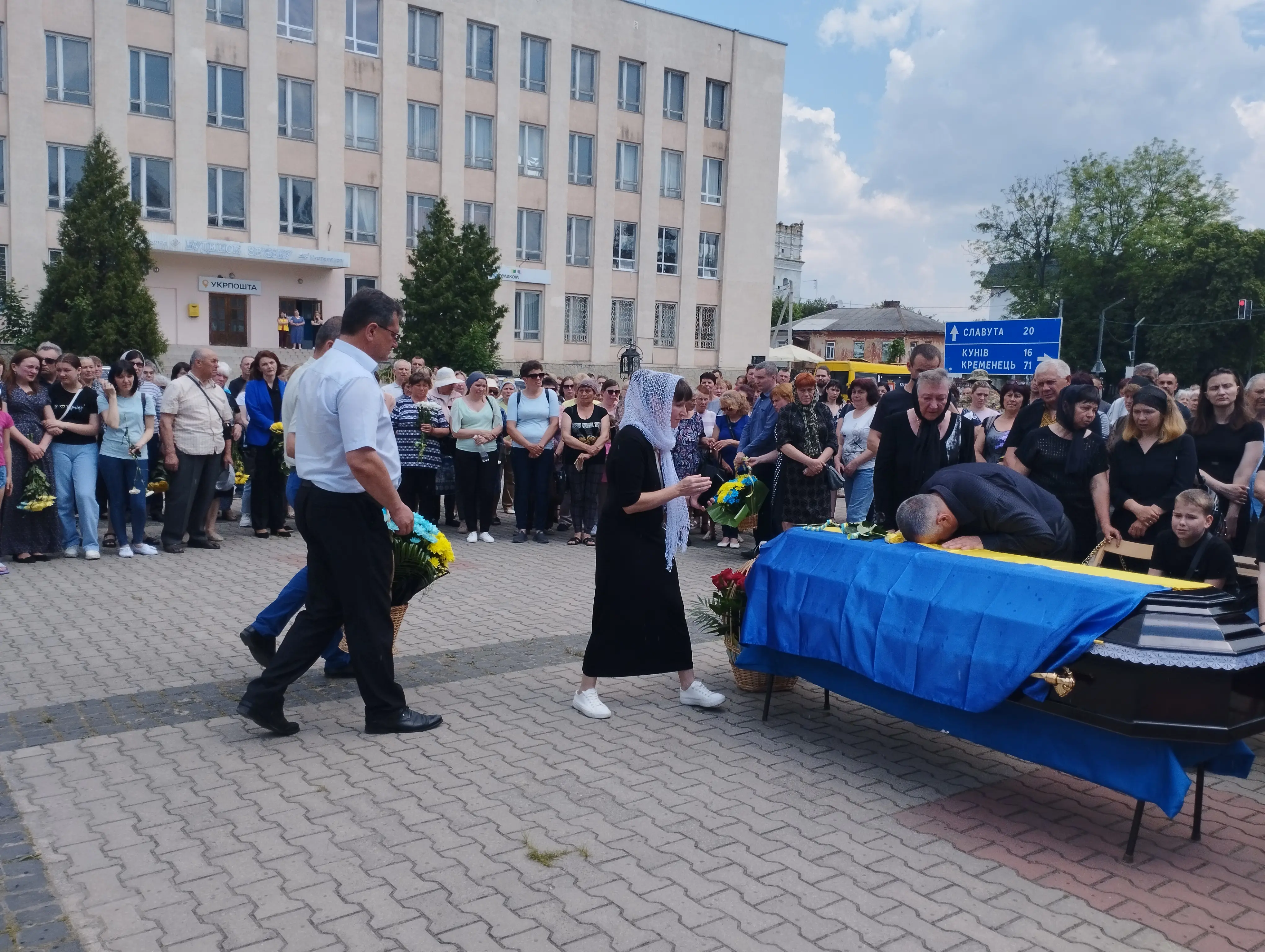 Опісля, траурний кортеж рушив до Острога. Віддати останню шану воїну, який поліг за наш мир і спокій,  на Майдан Свободи прийшли  сотні мешканців громади, близькі, друзі та побратими загиблого Героя, представники місцевої влади.  Острожани підходили до труни, клали квіти,  прощалися, схиляючись на коліна.  Ніхто не стримував сліз.