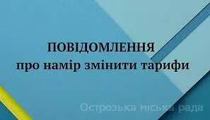 Острозьке КП «Водоканал» інформує про намір змін тарифів на послуги з централізованого водопостачання та водовідведення