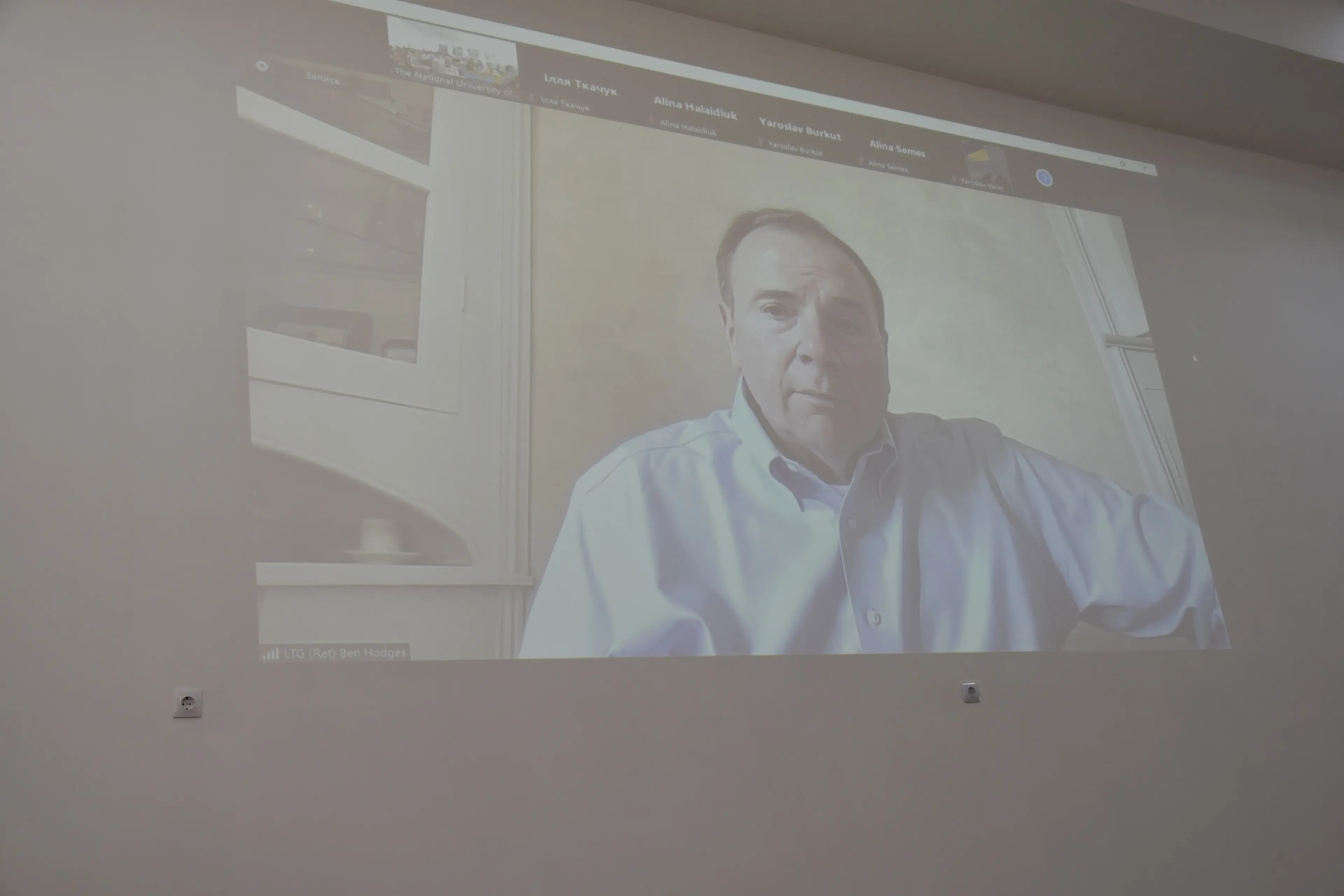 «Щиросердечно вітаємо Бена Ходжеса зі стін найстарішого й водночас наймолодшого навчального закладу України – Острозької академії. Це велика честь сьогодні приймати Вас у нашому університеті, а також слухати Вашу лекцію. Бен Ходжес є справжньою військовою легендою армії Сполучених Штатів Америки. Бажаємо Вам успіхів у першій лекції і сподіваємося, що незабаром зможемо зустрітися в очному форматі».