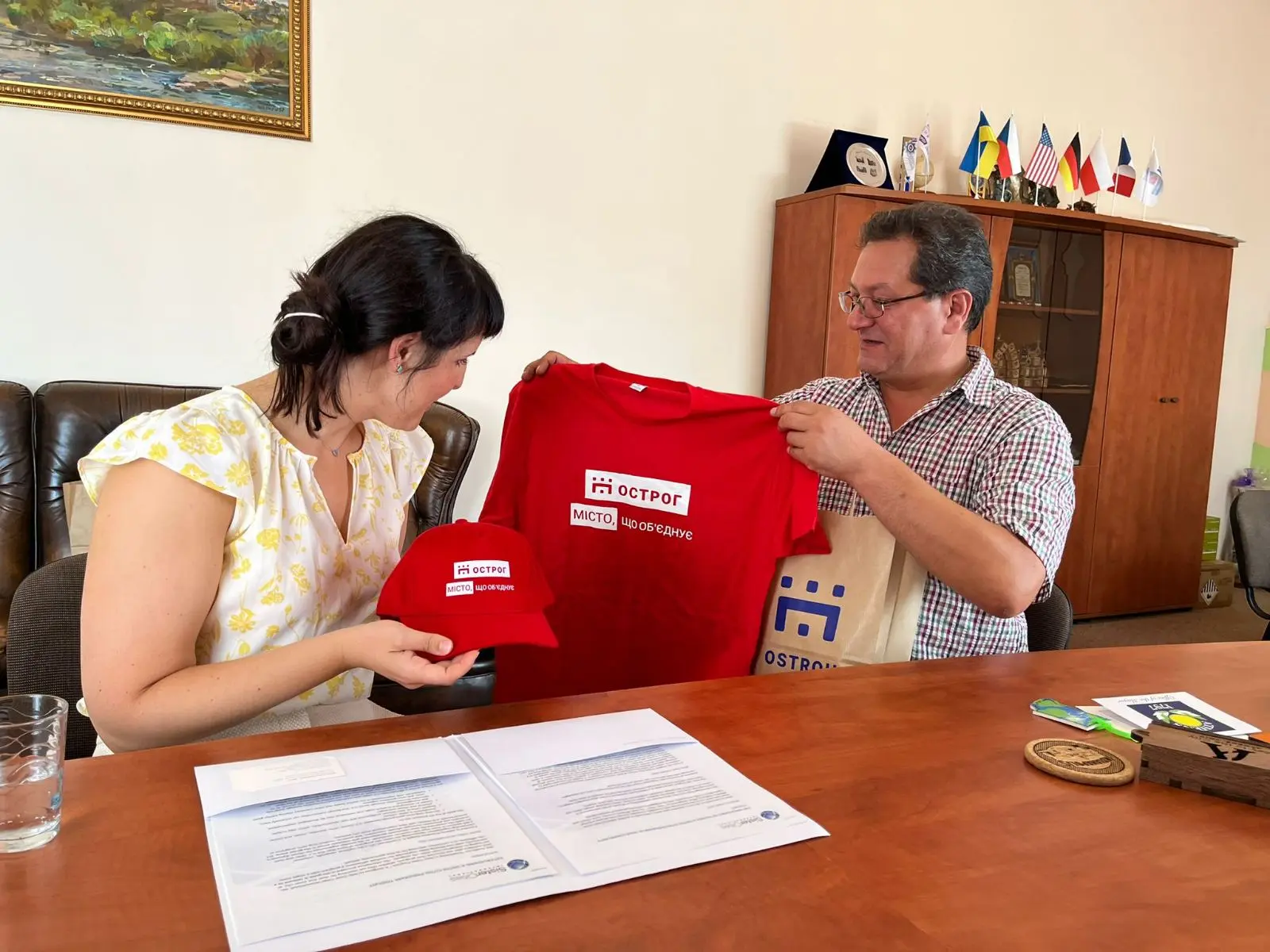 З приємністю отримали дипломатичні подарунки, зокрема ключ від міста-партнера, що свідчить про відкритість до співпраці. Та подарували свою сувенірну продукцію.
