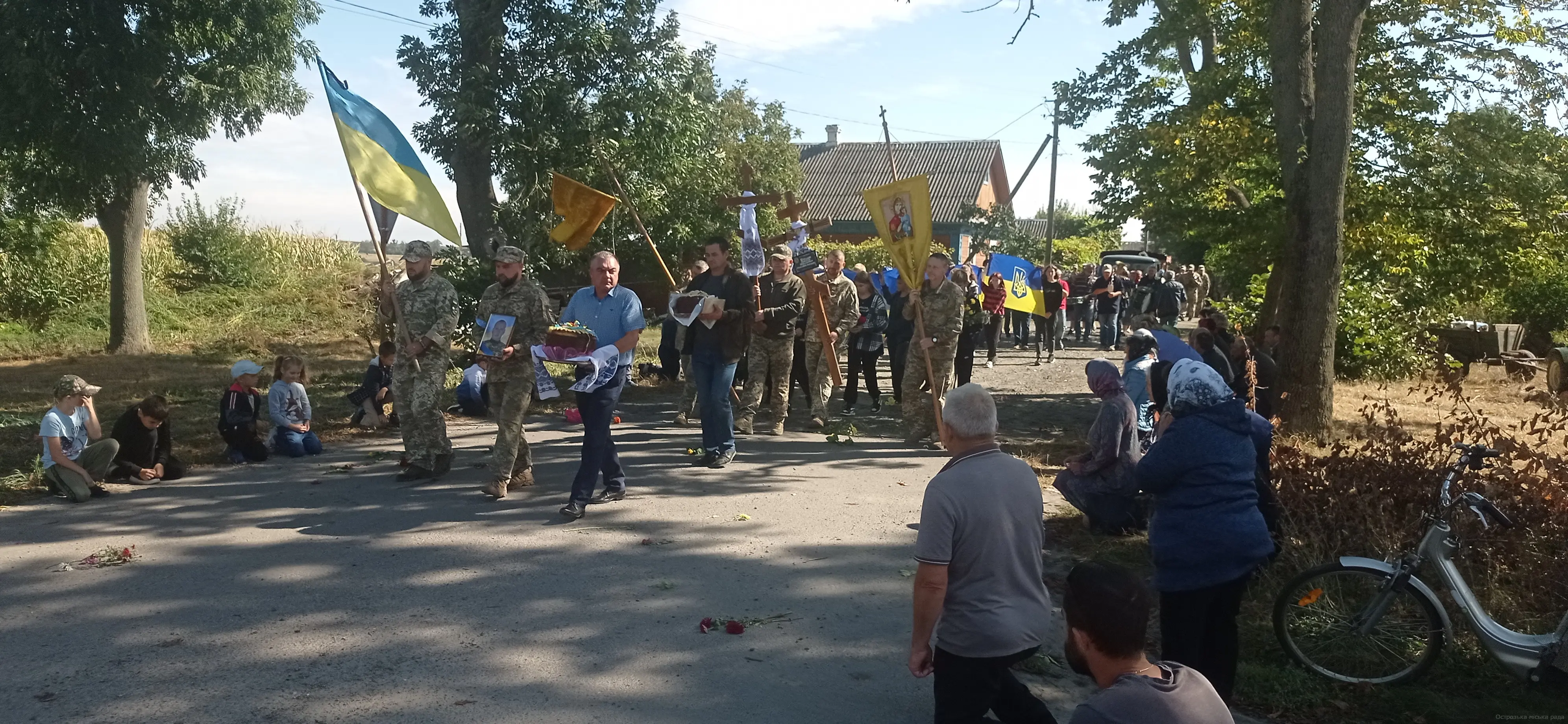 Сьогодні, 20 вересня, з глибоким сумом Рівненський район та Острожчина зустрічали скорботний кортеж полеглого воїна – Сергія ДАЦЮКА. Острожани та гості міста ставали на коліна, тримали в руках державні синьо-жовті прапори та стяги міста, перев’язані чорними траурними стрічками, звучала сумна мелодія «Пливе кача».