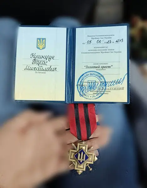 За проявлену мужність і успішне виконання завдання під час бою нагрудний знак Головнокомандувача Валерія Залужного "Золотий хрест" отримав Тарас Кушнерук.