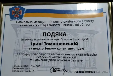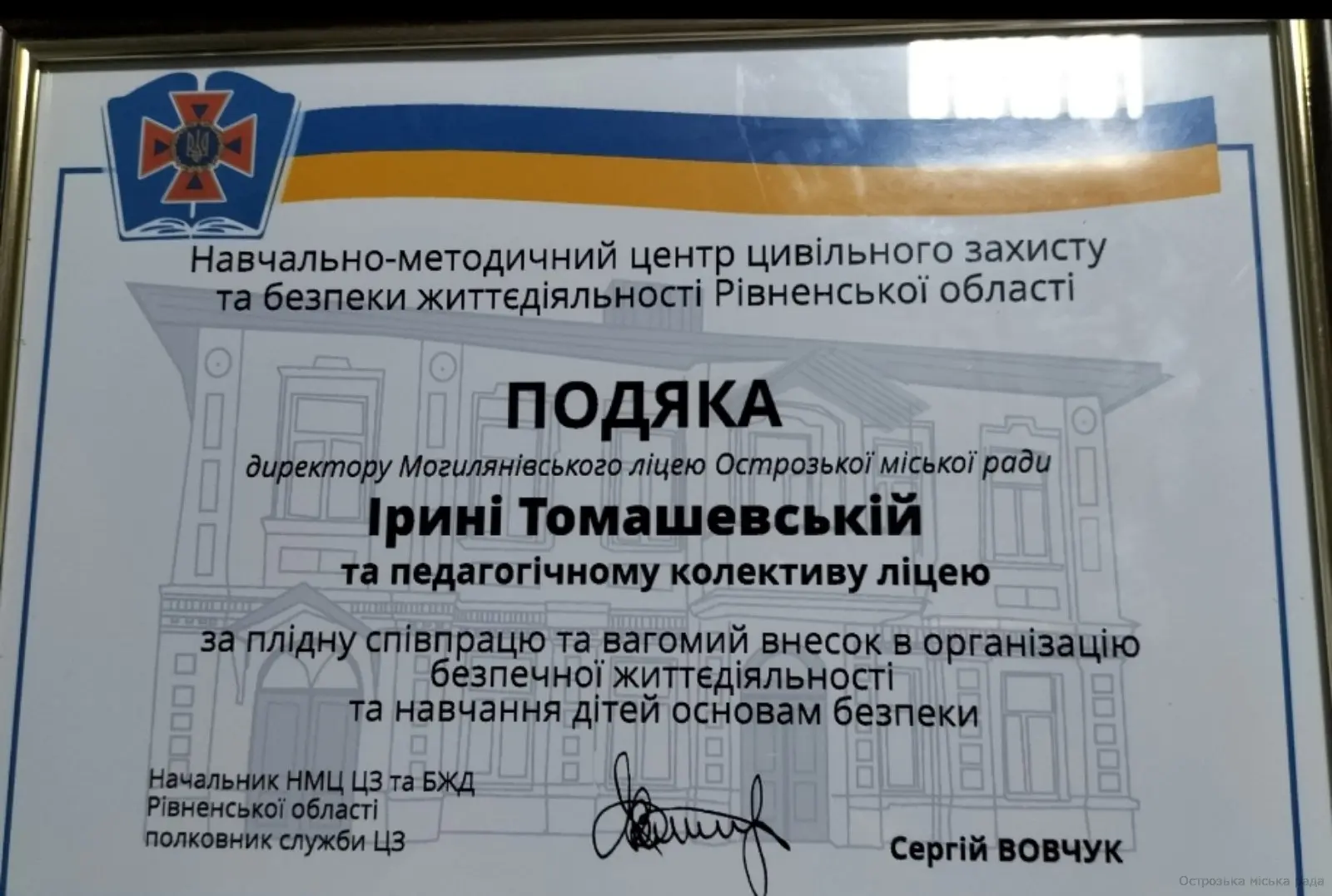 У Могилянівському ліцеї, 3 листопада, людно – офіційне відкриття Класу безпеки. На вимогу часу, в рамках реалізації всеукраїнського проєкту «Клас безпеки», за сприяння Острозької міської ради, депутатського корпусу, Управління освіти, молоді та спорту виконавчого комітету Острозької міської ради, за умов активної співпраці старости села, батьківської громади, працівників ліцею, учнів та небайдужих друзів закладу Клас безпеки у ліцеї обладнано та укомплектовано згідно вимог. Цей клас є не тільки освітнім середовищем для здобуття знань та навиків з безпеки, а й справжнім безпечним середовищем для усіх учасників освітнього процесу. Адже кабінет обладнаний в укритті. З подарунками та вітаннями до ліцею прибули очільники місцевої та районної влади, працівники ДСНС і поліції. Відкриття досить символічне, адже безпечна освітня локація у закладі працює ще з першого вересня. Тут поліцейські неодноразово проводили уроки з правил дорожнього руху, поведінки на вулицях і транспорті. Сьогодні наймолодші ліцеїсти ознайомились із новими матеріалами, макетами, експонатами безпекового середовища, вивчили нову руханку, проспівали, погрались і таким чином здобули нові знання та навички. Знання правил безпечної поведінки, вміння вчасно реагувати та визначати небезпеку, надавати першу домедичну допомогу – рятує життя.