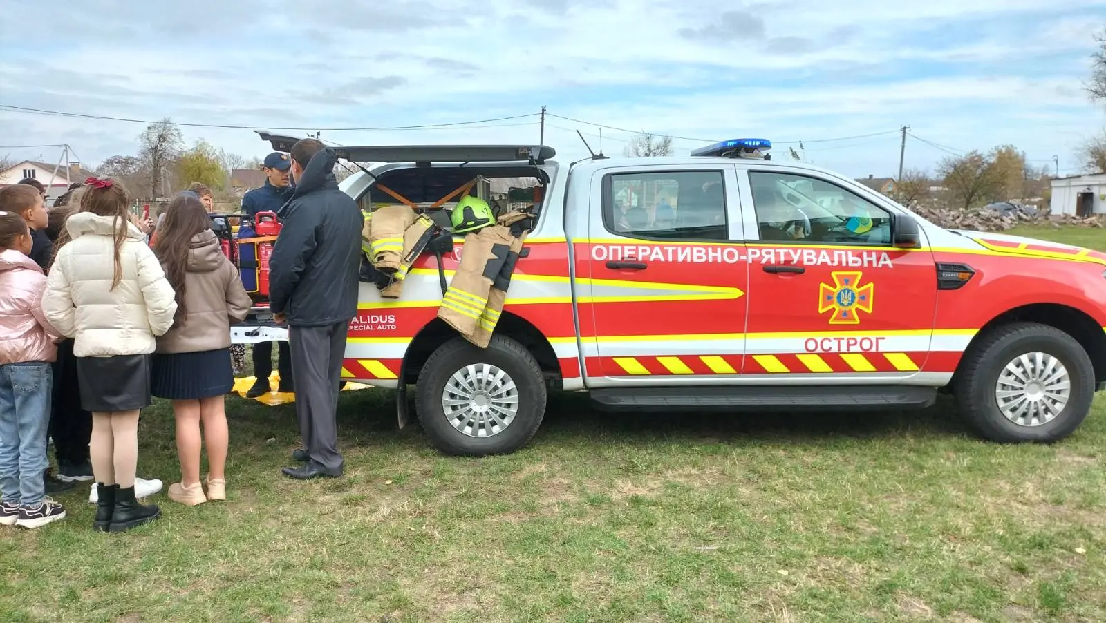Урок безпеки з учнями провела майстер виробничого навчання Острозького навчального центру ЦЗ Вікторія РАДУКАНР. Працівники ДСНС ознайомили учнів із правилами пожежної безпеки, нагадали як поводитись під час виявлення вибухонебезпечних чи підозрілих предметів. Учні зацікавлено розглядали спецзасоби, які могли приміряти, спецтранспорт поліцейських та рятувальників, в яких залюбки фотографувались, вмикали маячки, віддавали «команди» по гучномовцю. Адже серед гостей був вже знайомий поліцейський офіцер Острозької ТГ Петро МИКИТЮК. На захід завітали провідний інспектор Рівненського районного управління ГУ ДСНС України в Рівненській області Олексій ТИМОЩУК, завідувач Острозьким територіальним навчально-методичним центром Ярослав АНДРОСЮК, начальник відділу з питань НС ЦЗ населення та мобілізаційної роботи Острозької міської ради Тетяна МОСКАЛЮК, заступник начальника управління освіти, молоді та спорту – начальник відділу освіти Сергій ГУБЕРНЮК. З вітальними словами до присутніх звернулись начальник Рівненського міськрайонного управління ГУ ДСНС України у Рівненській області Віктор БАБАК, перший заступник Острозького міського голови Михайло КИРИЙЧУК, начальник Управління освіти, молоді та спорту виконавчого комітету Острозької міської ради Андрій ШЕВЧУК. Завідувач обласним методичним кабінетом навчально-методичного центру ЦЗ та БЖД населення Рівненської області Олена КОРНІЙЧУК вручила нагороду – Подяку колективу Могилянівського ліцею за співпрацю та вагомий внесок в організацію безпечної життєдіяльності та навчання дітей основам безпеки.