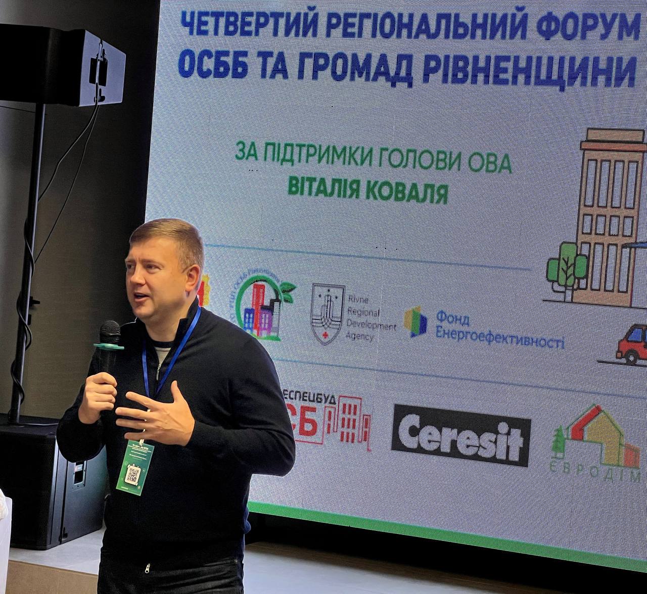 «На Рівненщині поступово зростає кількість ОСББ. Лише цьогоріч створили 29 нових об'єднань, а загалом – 1239. І сьогодні ми повинні спільними зусиллями працювати над енергетичною незалежністю. Завдяки такій співпраці ОСББ матимуть ще більше можливостей для покращення енергоефективності будинків, зокрема, використовувати й передові технології. Адже, навіть, попри виклики війни, можна змінювати інфраструктуру на краще», - сказав начальник Рівненської ОВА Віталій Коваль.