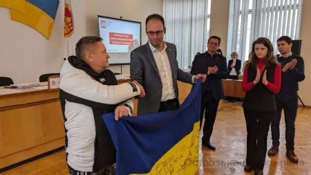 Перед початком засідання міський голова представив високоповажних гостей - делегацію з бельгійського міста Мальмеді: