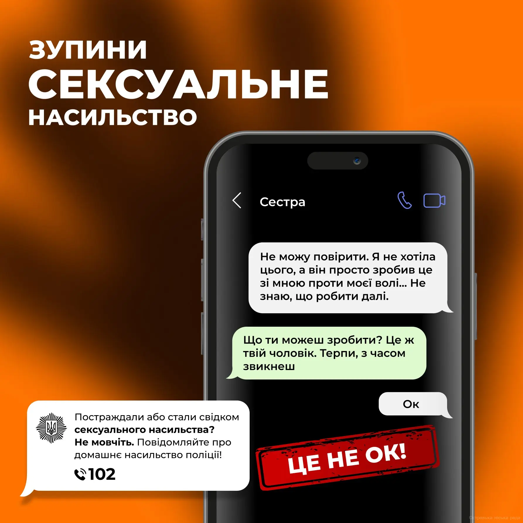 Якщо Ви постраждали від сексуального насильства або стали його свідками, не мовчіть! Телефонуйте за номером 102. Підтримка завжди поруч!