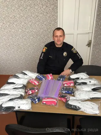 Після завершення уроку безпеки капітан поліції Богдан ФІЛІНЮК всім учням подарував світловідбиваючі браслети та рукавички.