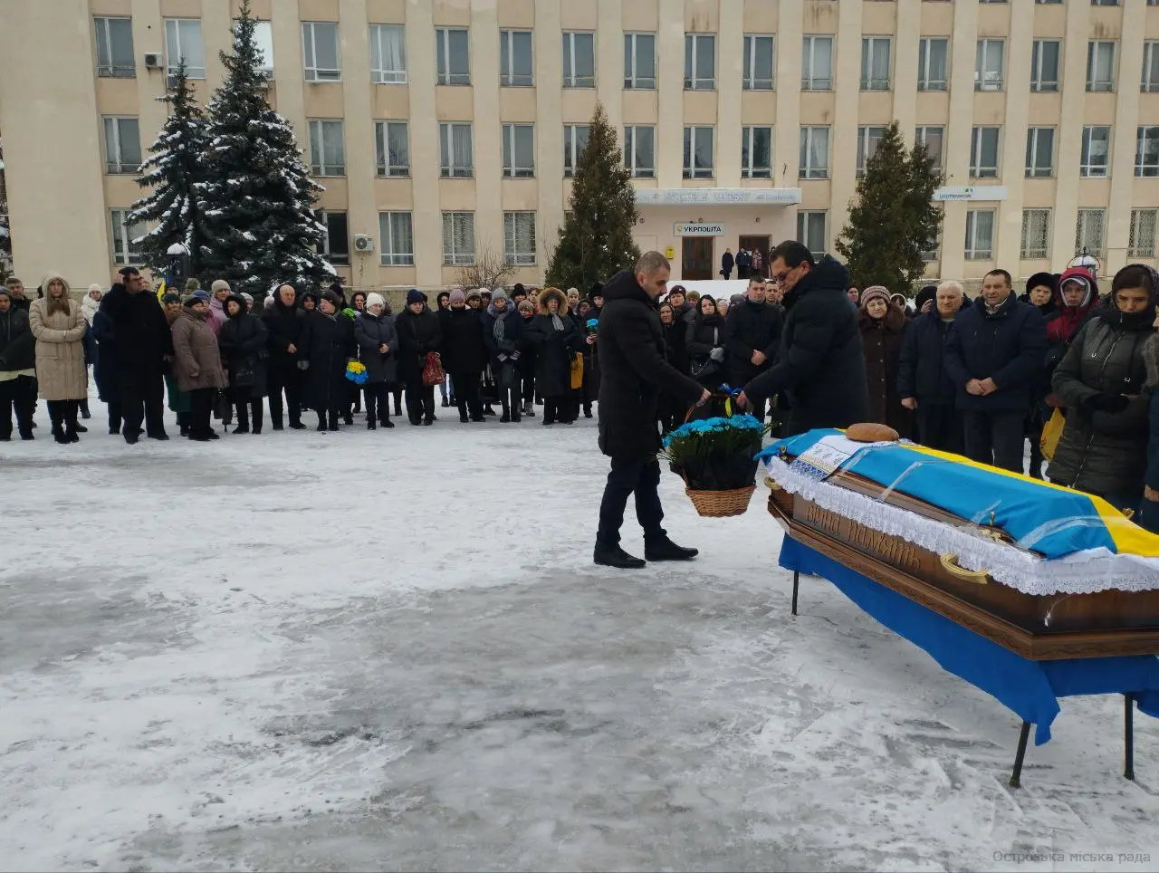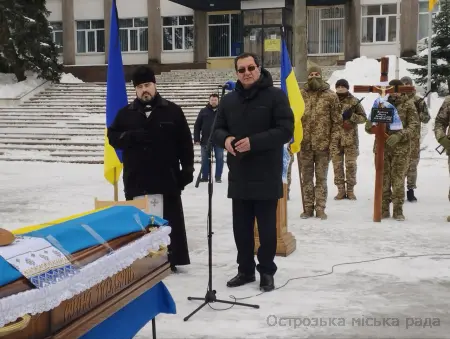 Прощання з загиблим Воїном спочатку проходило у батьківському домі, а потім громадське прощання відбувалося на Майдані Свободи (м. Острог), де зібралися його рідні, близькі та друзі, бойові побратими загиблого, а також жителі нашої громади. Заупокійна служба Божа відбувалася у Богоявленському соборі.