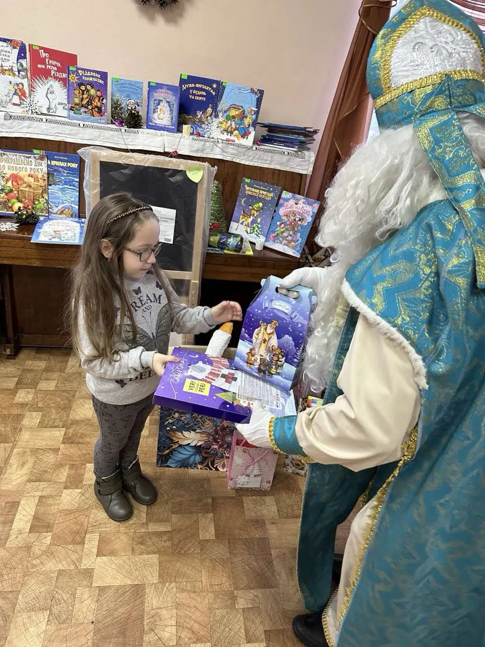 Частину подарунків Святий Миколай роздавав у своїй резиденцій (дитяча бібліотека), а частину, з допомогою поліцейських офіцерів громади, адресно діткам. Також Чудотворець дякував за теплу зустріч і вітав зі святом, бажав радості та добрих усмішок, світлої надії душі й вірної удачі, чарівних моментів і безсумнівного щастя на шляху, щирої любові, миру та перемоги.
