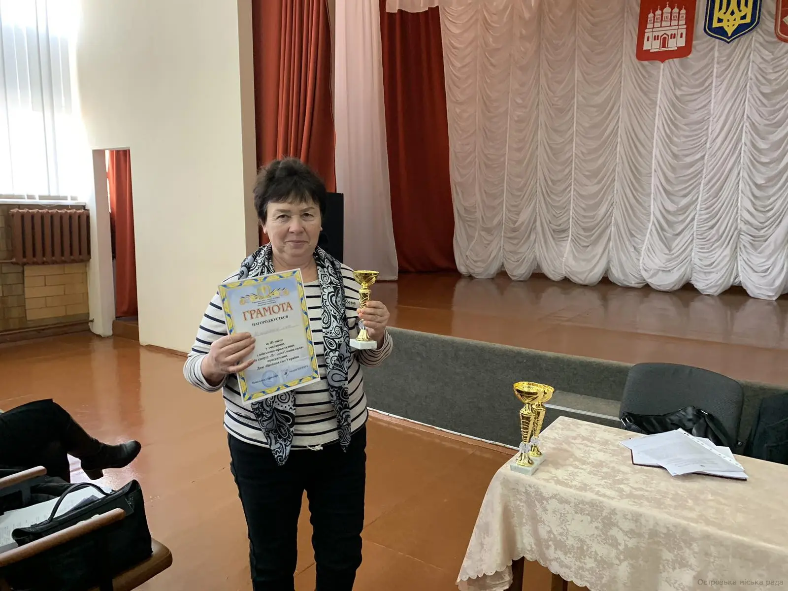 Заступник начальника управління Сергій ГУБЕРНЮК, вручив Грамоти Управління освіти, молоді та спорту виконавчого комітету Острозької міської ради та кубки переможцям змагань з військово-прикладних видів спорту «В єдності наша сила», які були проведені серед учнів закладів загальної середньої освіти громади.