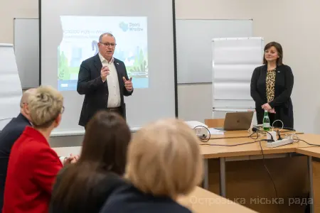 З 6 по 8 лютого у м. Вроцлав (Польща) на запрошення  відділення ООН зі зменшення ризику стихійних лих (UNDRR) відбувся семінар – тренінг для українських міст,  учасників  програми  Making Cities Resilient 2030 (Зробимо міста стійкими 2030),  в якому взяли участь представники нашої громади: Людмила Козак-начальник відділу зовнішніх зв’язків та Катерина Хлівна - Начальник інспекції з благоустрою Управління містобудування, архітектури, житлово-комунального господарства, благоустрою та землекористування Острозької міської ради.
