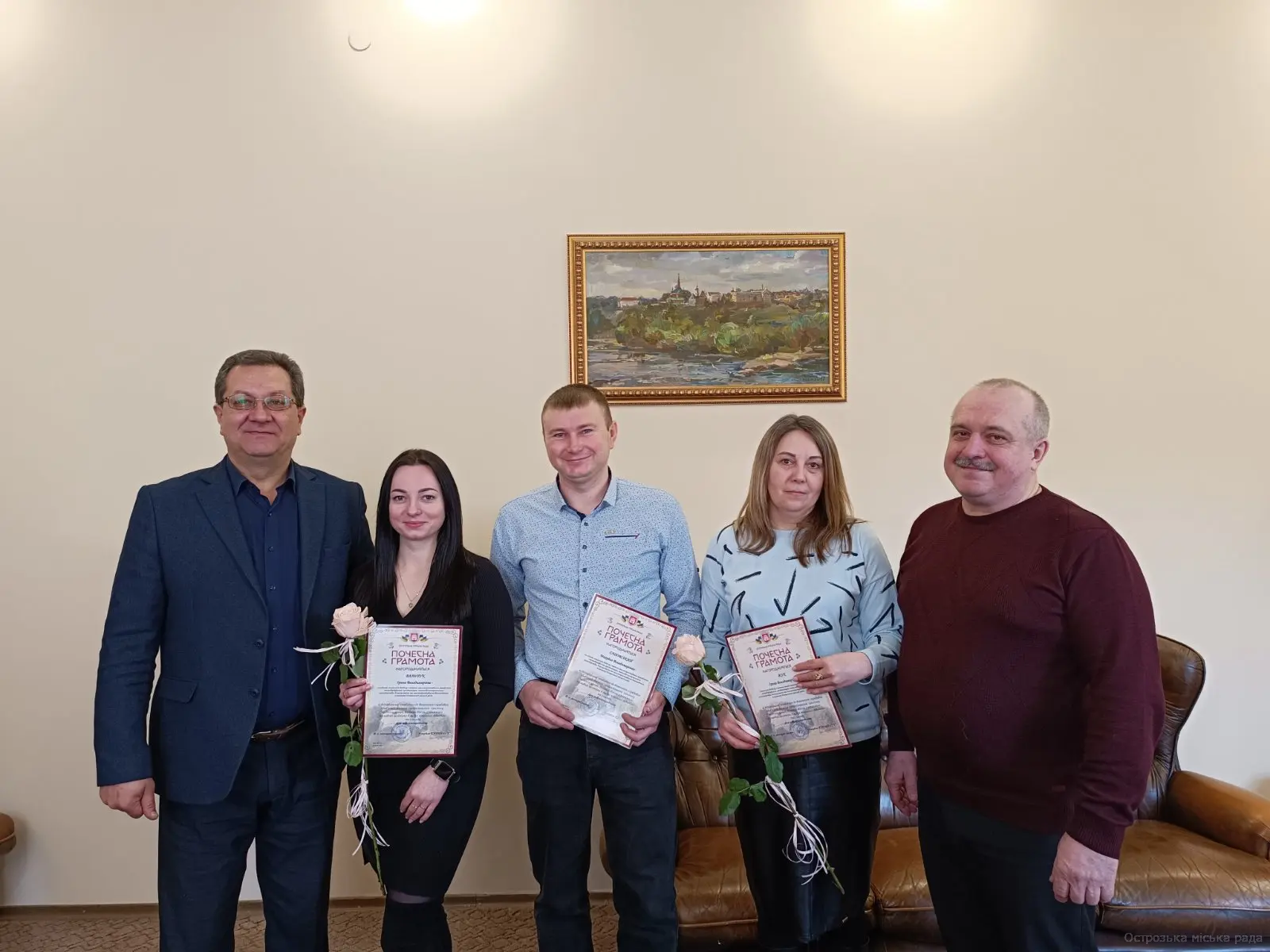За сумлінну працю, високий професіоналізм, відповідальне ставлення до обраної справи, вагомий внесок у реалізацію державної політики в галузі земельних відносин та з нагоди професійного свята – Дня землевпорядника Почесною грамотою Острозької міської ради нагороджено ВАСИЛЬЧУК Ірину Володимирівну, САДОВСЬКОГО Михайла Володимировича та  ЖУК Ірину Володимирівну.
