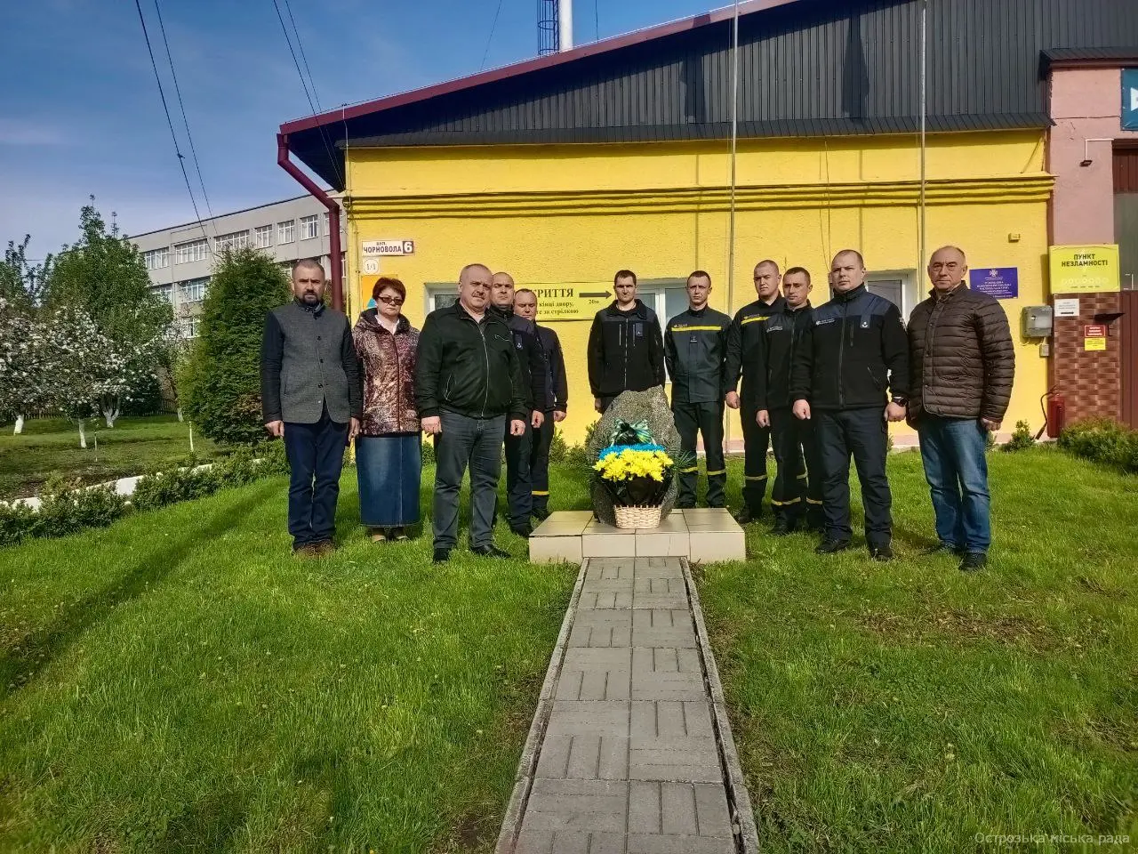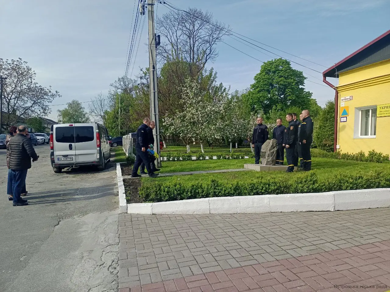 Сьогодні відбулося покладання квітів до пам'ятного знаку "Вшанування подвигу учасників ліквідації наслідків аварії на Чорнобильській АЕС". Участь у покладанні квітів брали перший заступник міського голови Михайло КИРИЙЧУК, заступник міського голови Ольга ЛОГВІН, заступник міського голови Олександр ХАРЧУК, начальник управління праці та соціального захисту населення Олександр СТРАТЮК та 17 державна пожежно-рятувальна частина ГУ ДСНС України у Рівненській області міста Острог на чолі з в.о начальника пожежно-рятувальної частини міста Острог Володимиром СКОРОХОДОМ.