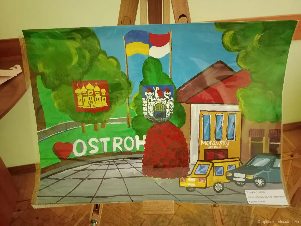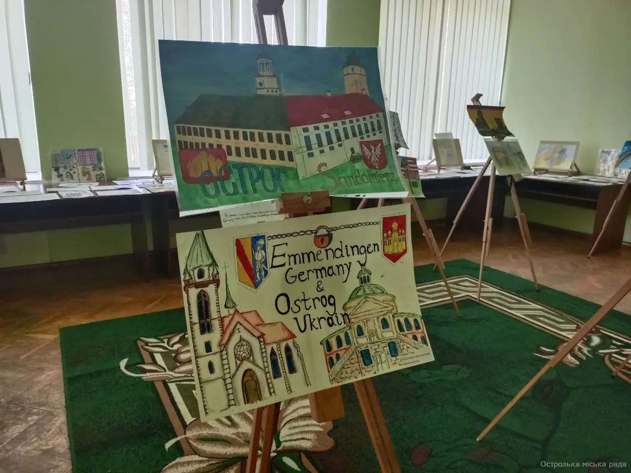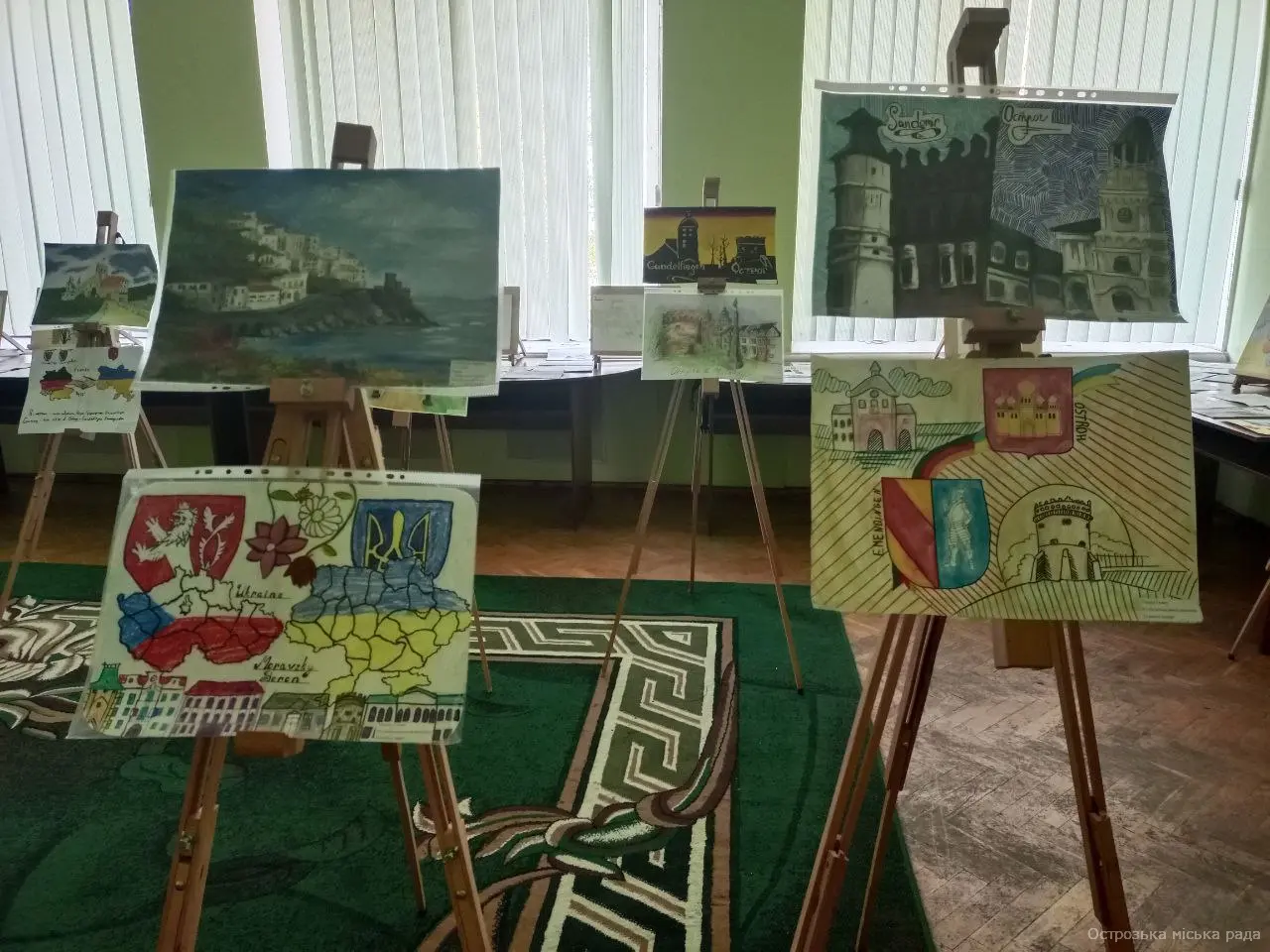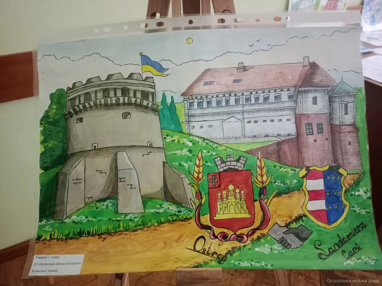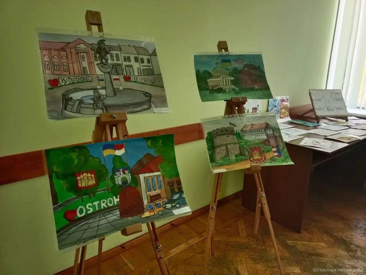 Сандомир, Берунь, Гнєв, Моравський Берунь, Еммендінген, Гундельфінген, Торре дель Греко, Боффорт та Афіни - кожен малюнок відображає наші зв'язки дружби, які об'єднують Острог і ці міста. А також нашу вдячність їм за підтримку та допомогу. Окрім міських пейзажів та пам'яток діти малювали свої надії на кращий світ, зображуючи співпрацю та взаєморозуміння. Через своє мистецтво вони передали потужне прагнення миру, руйнуючи мовні та культурні бар'єри. Словами одного маленького художника: "Я малював наше майбутнє, де мир та дружба не знають кордонів".