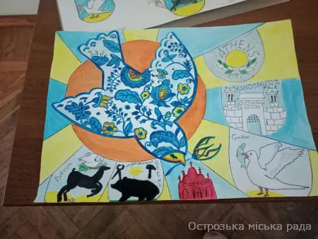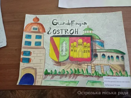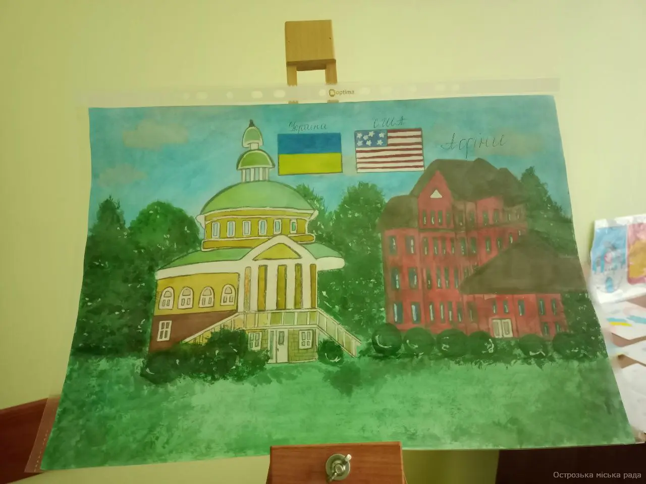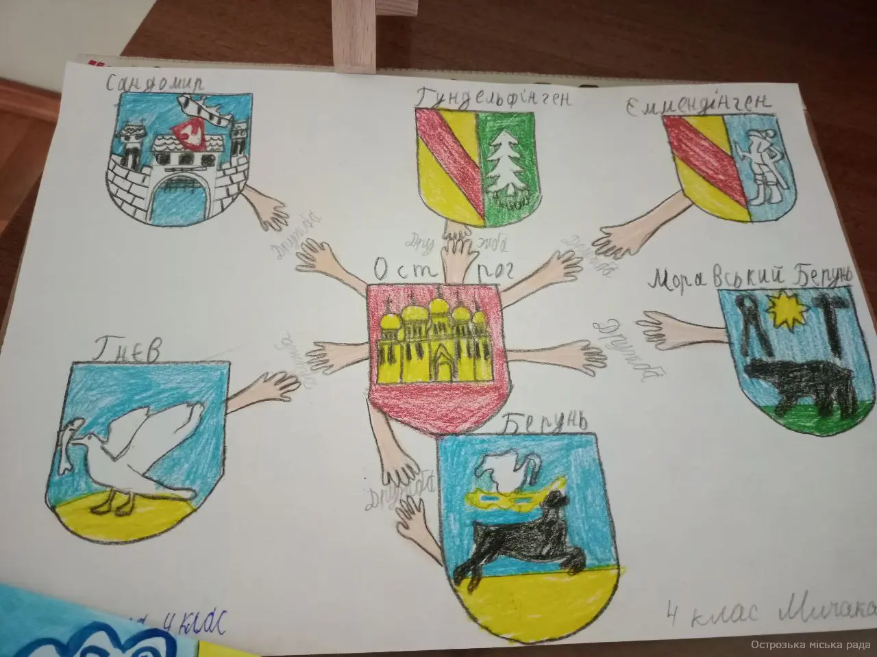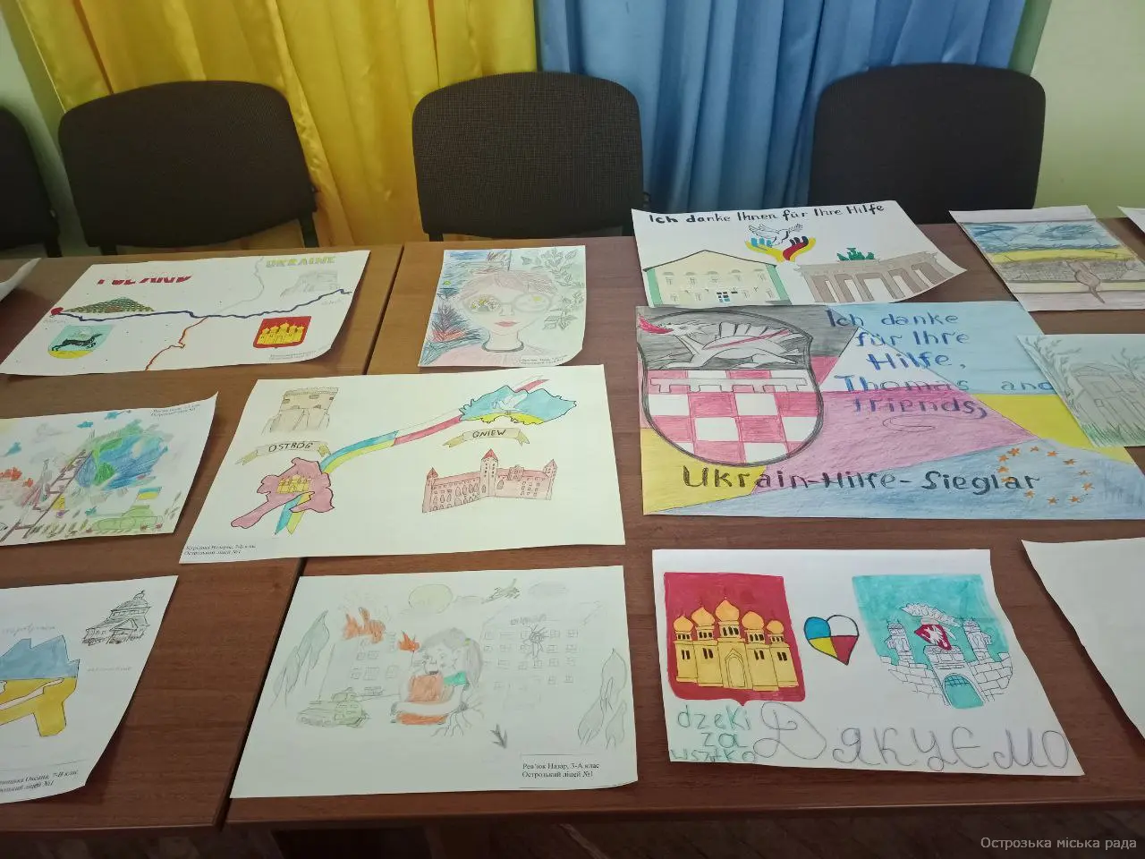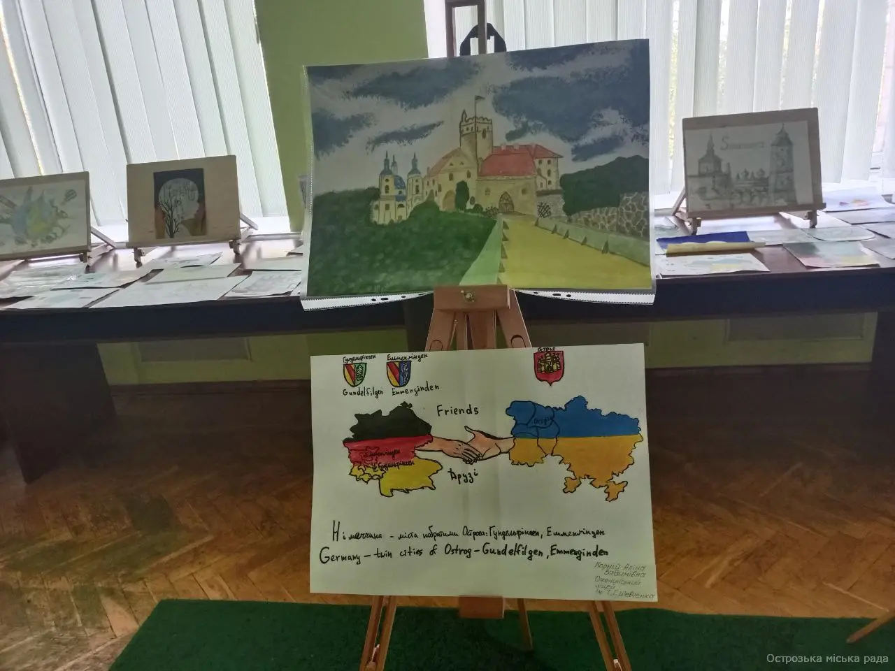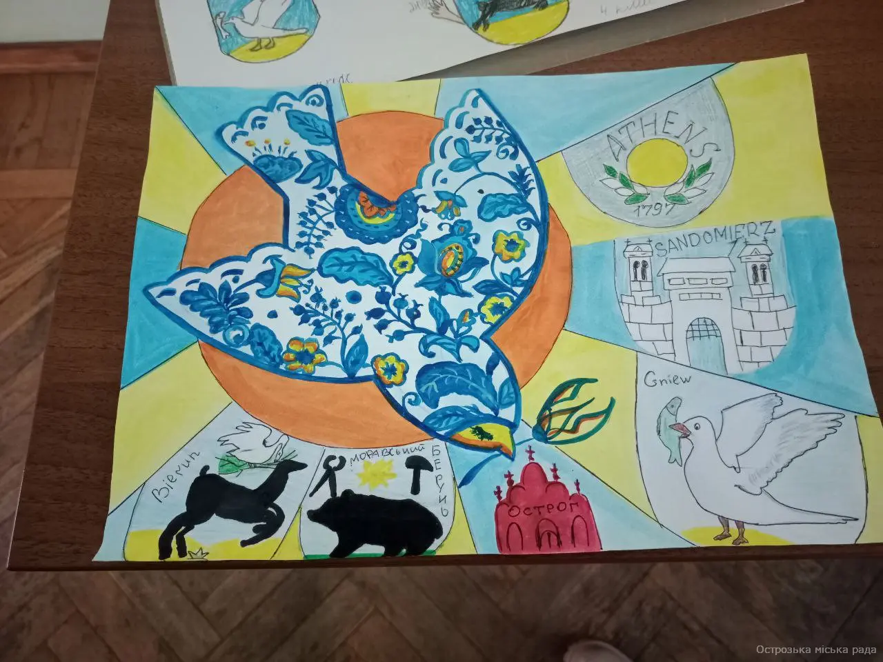 Сандомир, Берунь, Гнєв, Моравський Берунь, Еммендінген, Гундельфінген, Торре дель Греко, Боффорт та Афіни - кожен малюнок відображає наші зв'язки дружби, які об'єднують Острог і ці міста. А також нашу вдячність їм за підтримку та допомогу. Окрім міських пейзажів та пам'яток діти малювали свої надії на кращий світ, зображуючи співпрацю та взаєморозуміння. Через своє мистецтво вони передали потужне прагнення миру, руйнуючи мовні та культурні бар'єри. Словами одного маленького художника: "Я малював наше майбутнє, де мир та дружба не знають кордонів".