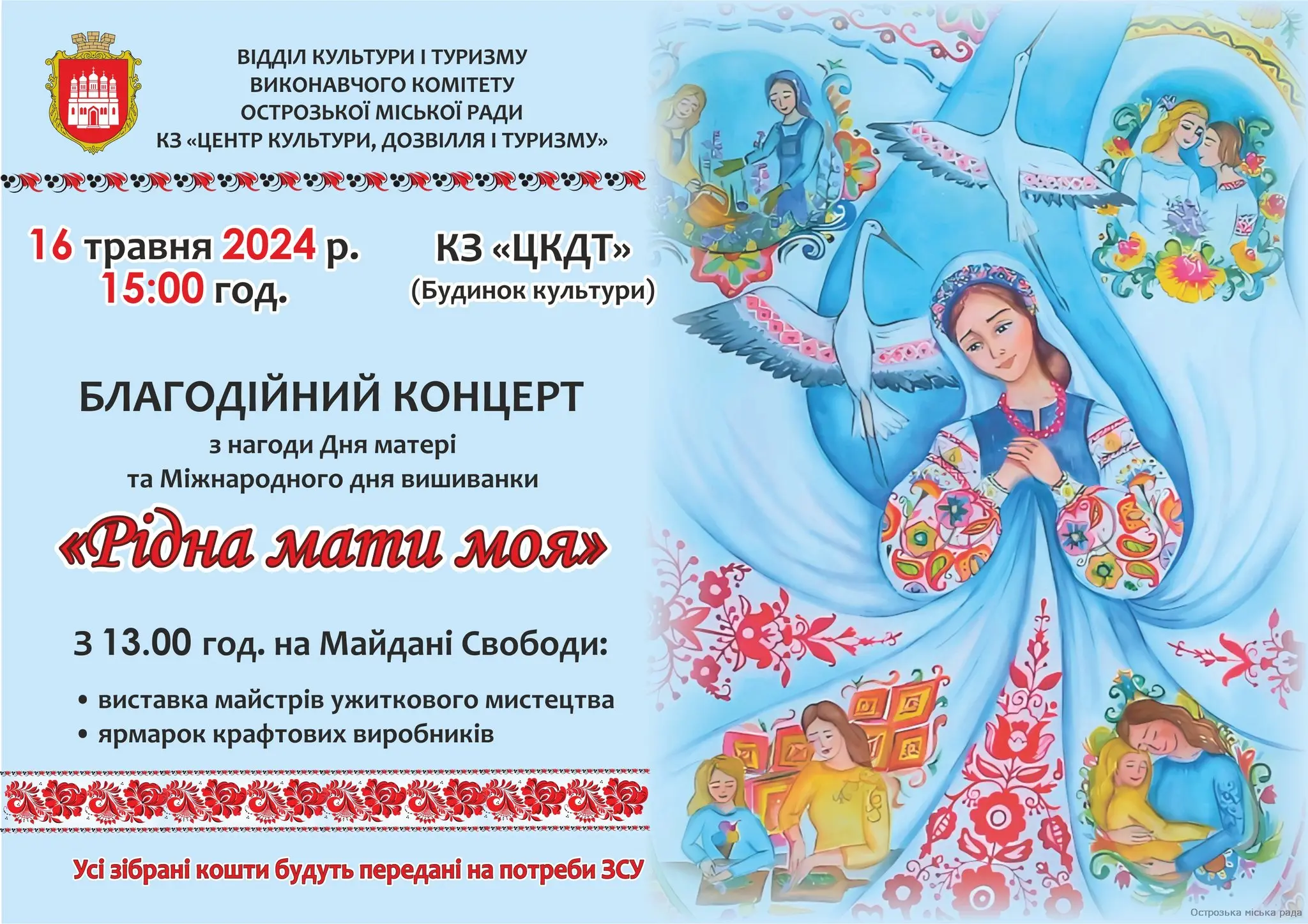 Запрошуємо усіх вас 16 травня на благодійні заходи з нагоди Дня матері та Міжнародного дня вишиванки.