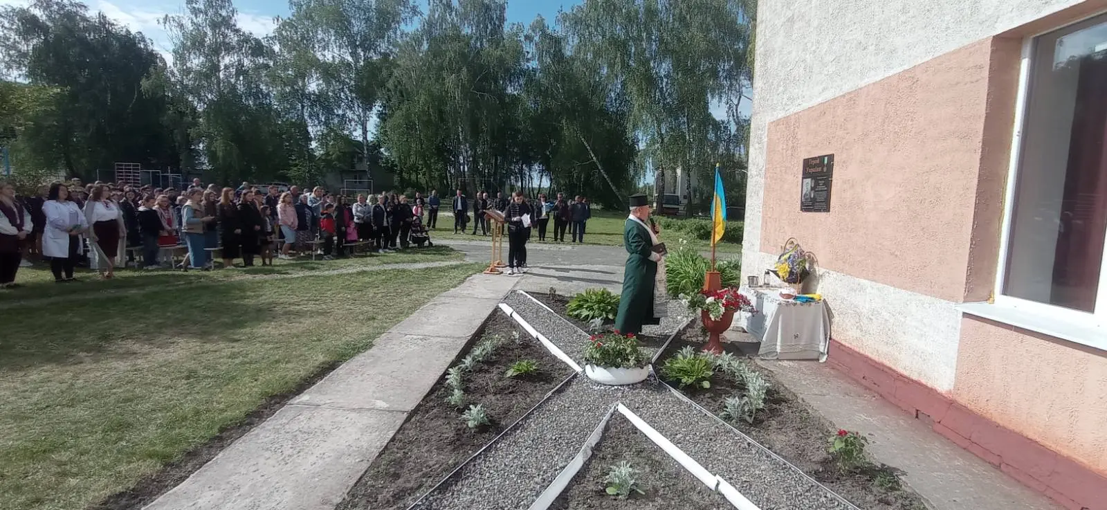 Почесне право відкрити меморіальну дошку було надано дітям захисника – Артему, Мар’яні та Валерії. Присутні вшанували пам’ять загиблого земляка хвилиною мовчання і поклали квіти до меморіальної дошки, учні ліцею запалили свічку пам’яті для Героїв, які відали своє життя за наше майбутнє.