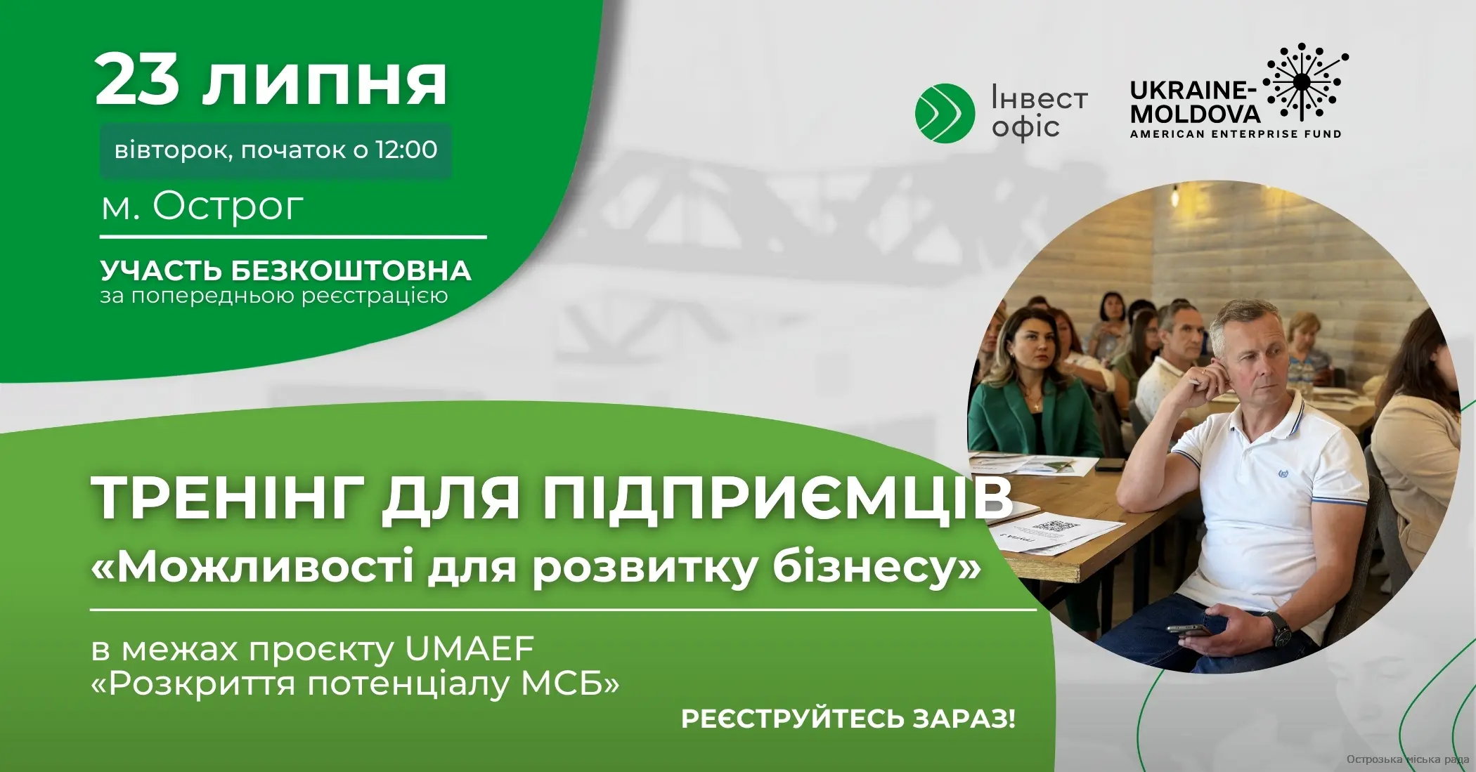 Запрошуємо малий та середній бізнес Острожчини на безкоштовний тренінг.