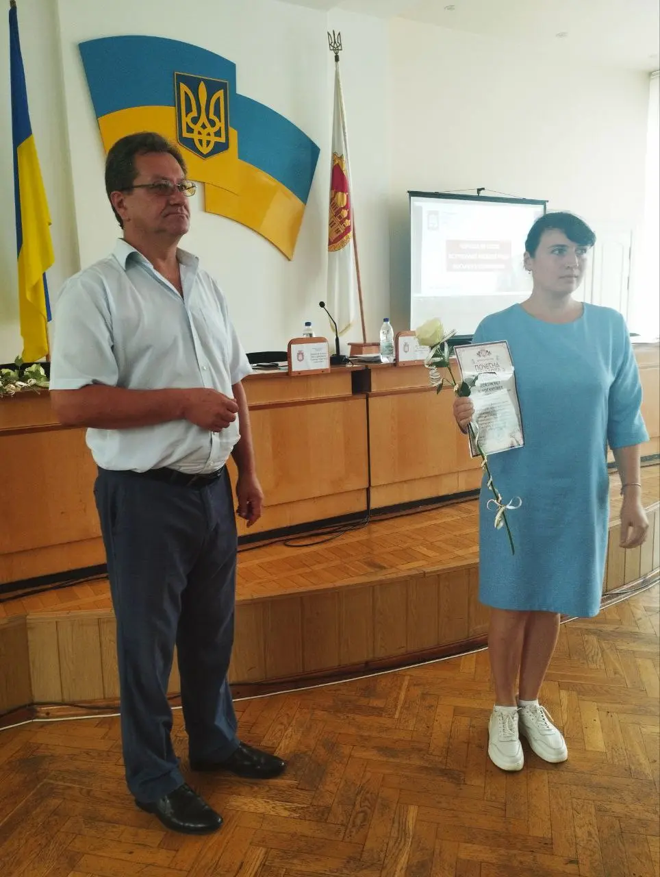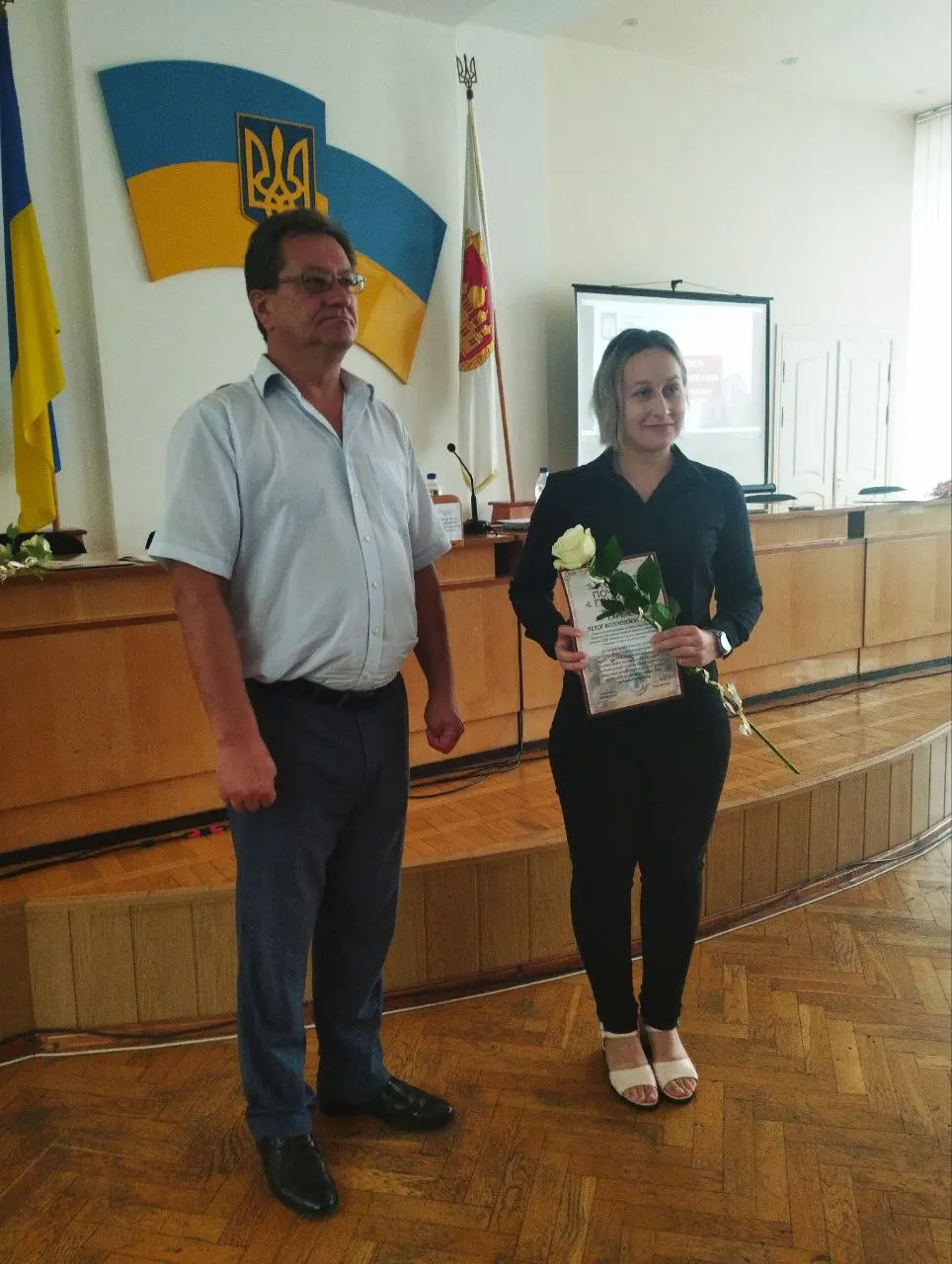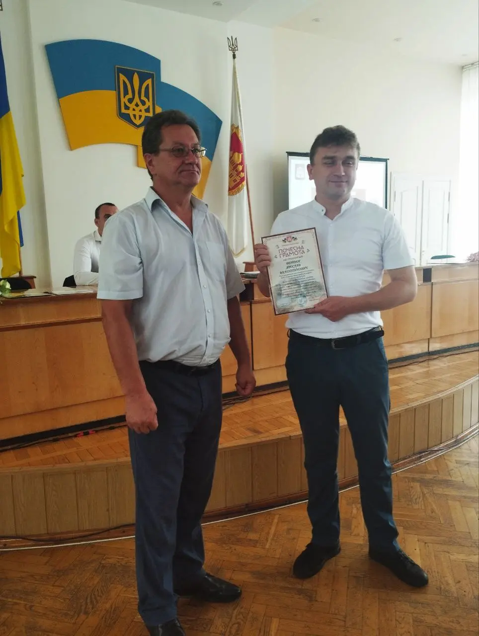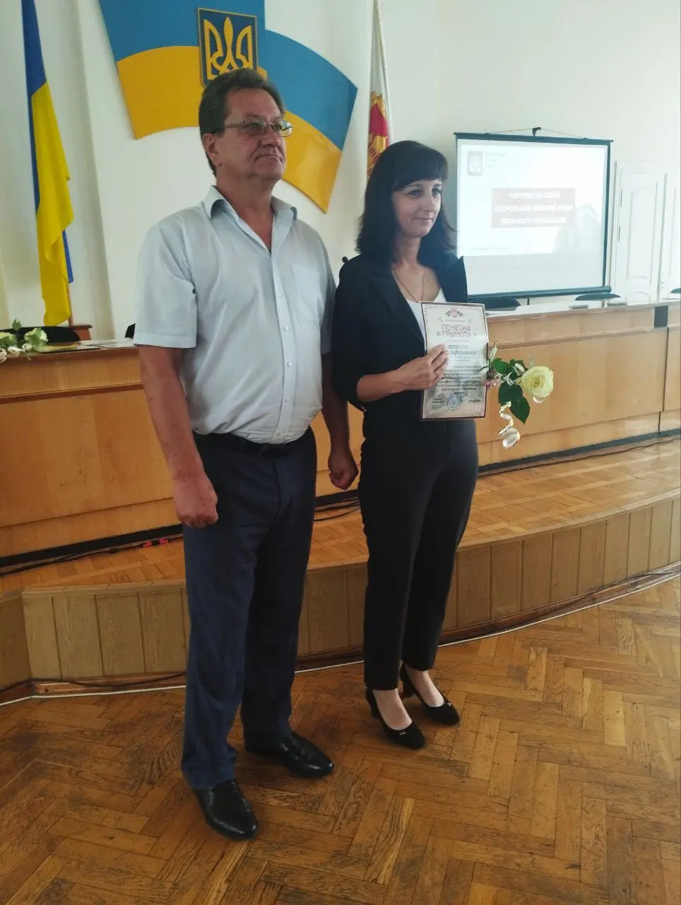 На початку засіданні сесії, Острозький міський голова Юрій Ягодка разом з старшим офіцером Шостого відділу Рівненського РТЦК та СП Леонідом Рубанським виконали почесну і водночас сумну місію – вручили посмертні державні нагороди родинам загиблих військовослужбовців.