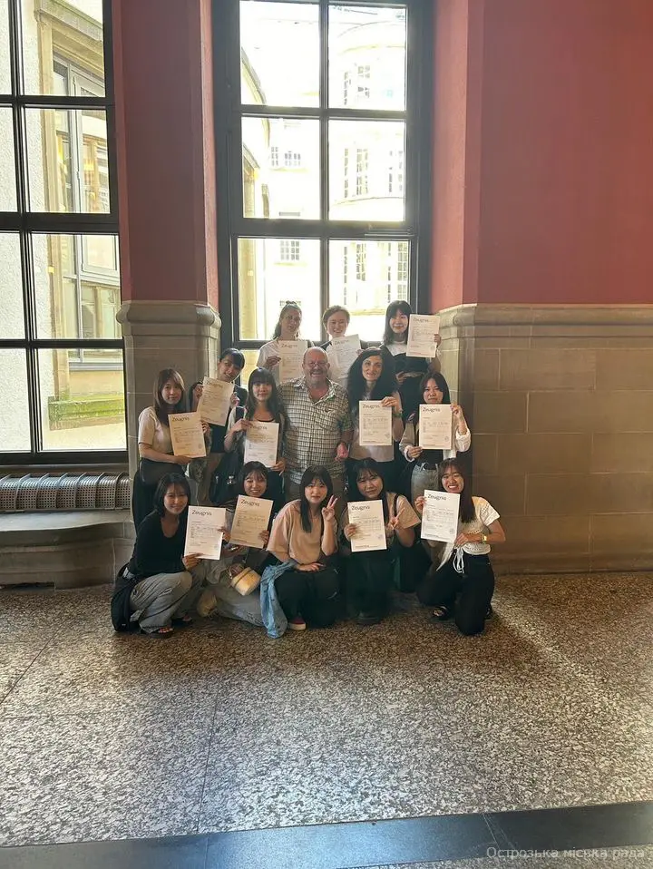 "Цього року мені випала чудова можливість проходити стажування в містечку Еммендінген, яке є містом побратимом Острога. Стажування проходило з 5 серпня по 28 серпня в університеті Alberts-Ludwig's-Universitat Freiburg-Sprachlehrinstitut. Хотілось би висловити подяку нашим друзям за можливість поглибити знання з німецької мови, багато довідатись про їх культуру та традиції. Крім того, я мала змогу познайомитись з чудовими людьми та знайти нових друзів."