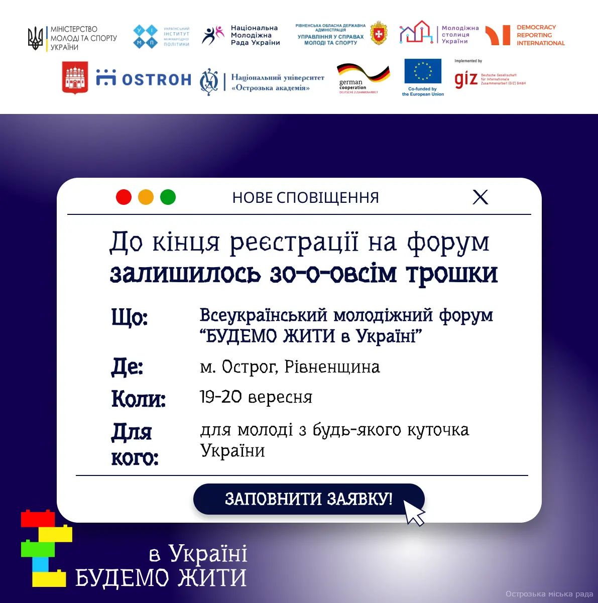 Залишаються останні хвилинки на реєстрацію на участь у форумі “БУДЕМО ЖИТИ в Україні”