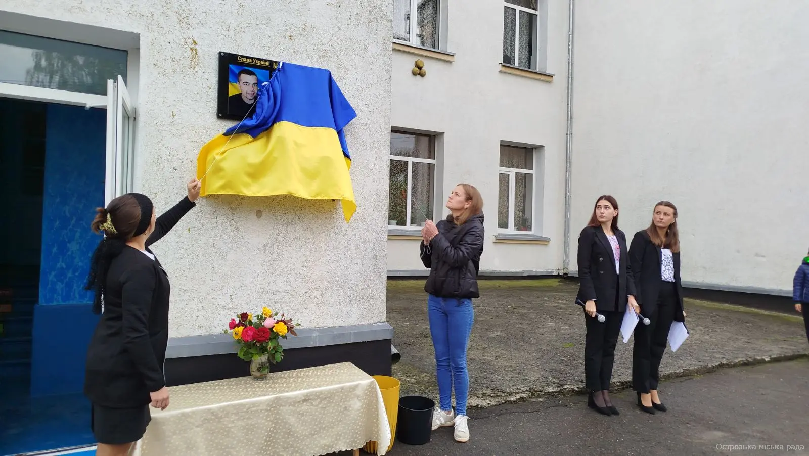 У заході брали участь керуюча справами виконавчого комітету Острозької міської ради Ліна ГУРІНА, начальниця відділу з питань землекористування Ірина ГОРДЄЄВА, заступник начальника управління – начальник відділу освіти виконавчого комітету Острозької міської ради Сергій ГУБЕРНЮК, настоятель Космо-Даміанівської церкви села Розваж, рідні, близькі, друзі героя, колектив та учні Розвазької гімназії, односельчани. Під мелодію «Плине кача» сестра та дружина загиблого героя відкрили меморіальну дошку. Після чого отець Ярослав провів церемонію освячення. Ведучі заходу розповіли про життєвий шлях та обставини загибелі героя. Слова вдячності та пошани висловила дружина Олена та гості. У пам’ять Леоніда СТРАТІЯ висаджено яблуню у шкільному саду. Присутні вшанували пам’ять загиблого героя хвилиною мовчання та поклали квіти до меморіальної дошки.