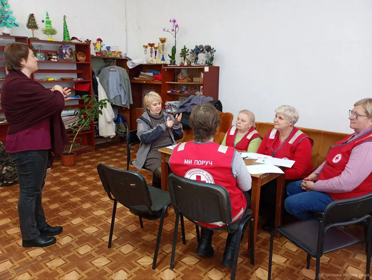 В рамках Всеукраїнської програми ментального здоров'я «Ти як?», створеної за ініціативи першої леді України Олени Зеленської, фахівці Острозького міського центру соціальних служб провели тренінг з надання першої психологічної допомоги та базових навичок стресостійкості для волонтерів Острозького Товариства Червоного Хреста.