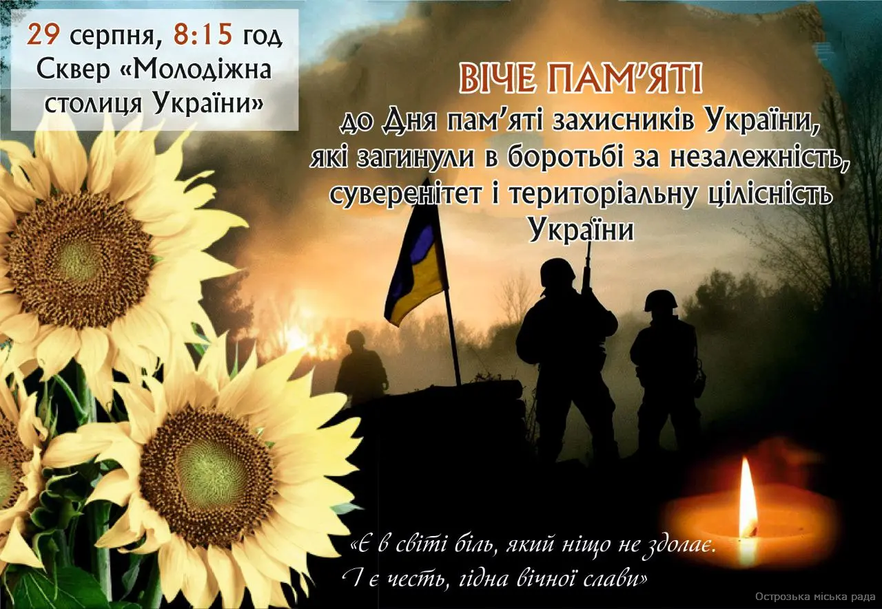 29 серпня — День пам’яті захисників України, які загинули в боротьбі за незалежність, суверенітет і територіальну цілісність нашої держави.