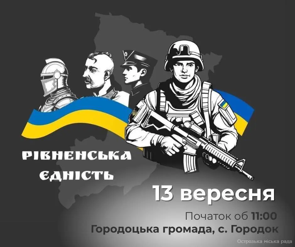 Рівненська обласна та районна державні адміністрації щиро запрошують мешканців Острозької громади на захід «Рівненська єдність» — подію, що вшановує відвагу, звеличує подвиг Захисників та єднає серця в ім’я сильного регіону й Перемоги.