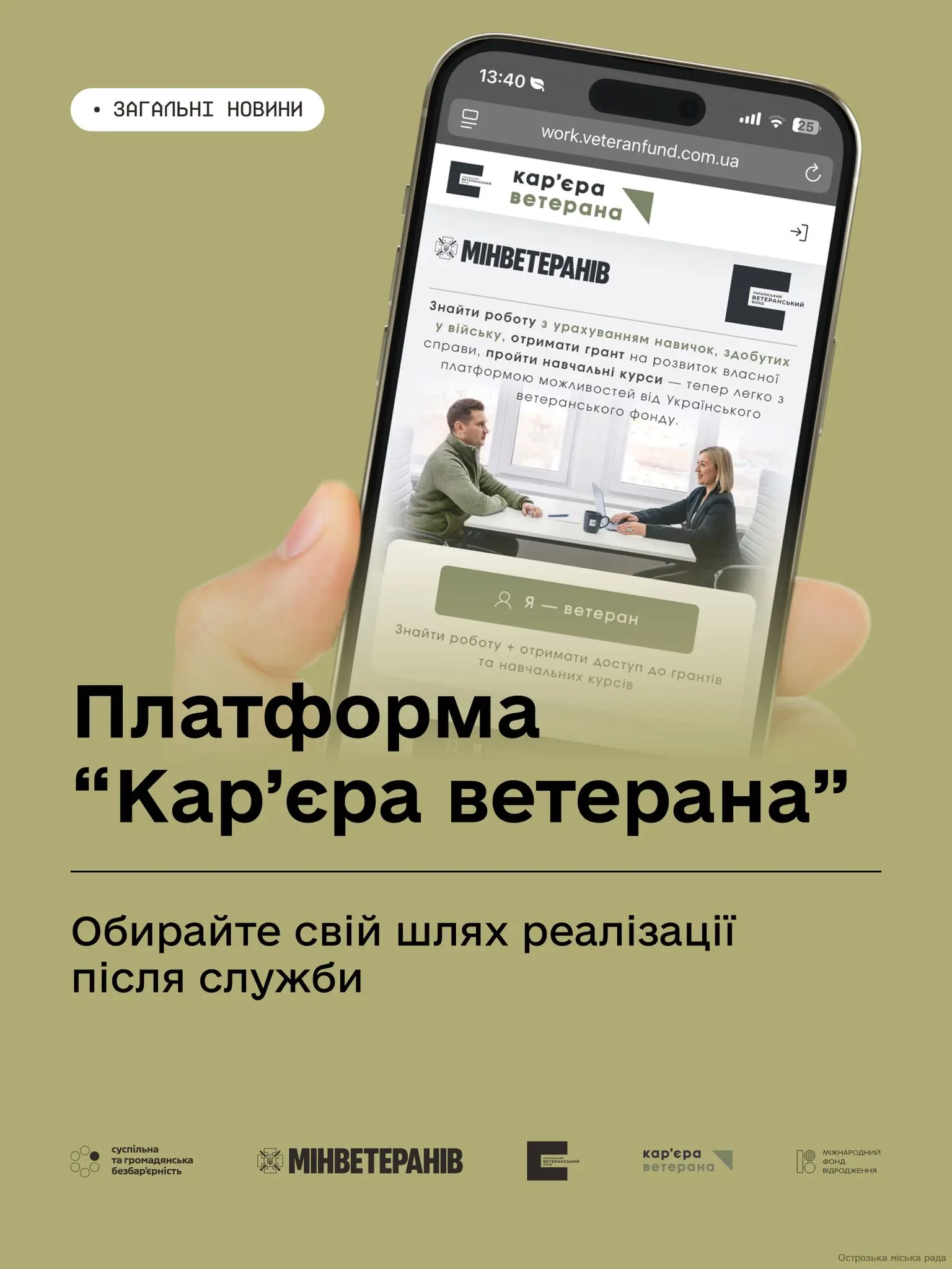 -Платформа “Кар’єра ветерана” – цифровий майданчик, створений Український ветеранський фонд Мінветеранів, що допомагає Захисникам і Захисницям знайти нове покликання після повернення зі служби.