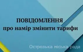 Повідомлення про намір зміни тарифу на теплову енергію