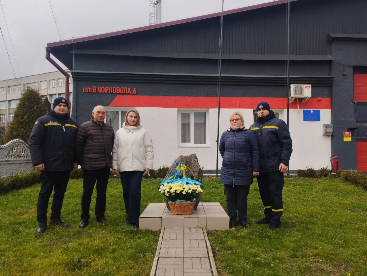 Квіти до меморіалу поклали заступник міського голови Марія Подгородецька, начальник управління праці та соціального захисту населення Олександр Стратюк, заступник начальника відділу з питань ветеранської політики та пільгових категорій громадянуправління праці та соціального захисту населення Ірина Міліщук а також представники Острозького міськрайонного сектору ГУ ДСНС у Рівненській області.