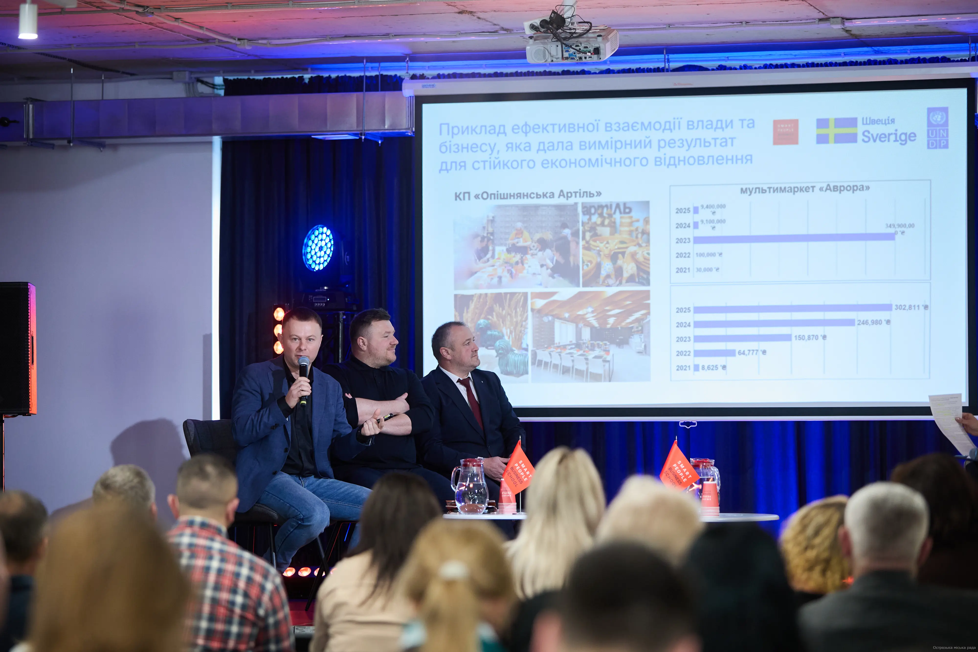 Rivne Business Forum - ще один важливий крок до посилення співпраці з бізнесом. Днями, Ольга Стецюк взяла участь у Rivne Business Forum як начальник відділу проєктної та інвестиційної діяльності. Захід став майданчиком для обміну досвідом та чітким орієнтиром, у якому напрямку громадам варто рухатися далі у співпраці з бізнесом. Форум наочно показав: підтримка підприємництва - це не лише про програми чи фінансування. Це про системну взаємодію, довіру, швидкі та зрозумілі рішення для бізнесу, супровід інвесторів і створення комфортних умов для розвитку підприємств на місцях. Особливо цінним був практичний досвід підприємців, які вже скористалися державними та регіональними інструментами підтримки. Острозька громада почувши досвід інших громад зможе ще активніше доповнювати державні програми власними локальними рішеннями, посилювати комунікацію з підприємцями та будувати підтримку стратегічно. Захід відбувся за підтримки Рівненської ОДА, у партнерстві з бізнес-школою Smart People, в межах проєкту, що фінансується Урядом Швеції та впроваджується ПРООН в Україні.