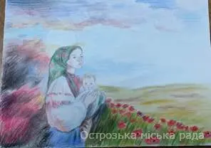 Ольга ПОПЧУК, вихованка гуртка «Образотворче мистецтво» Комунального закладу «Острозький Будинок школяра», з роботою «Хустина», керівник – Людмила МАЛЕВАНЧУК.