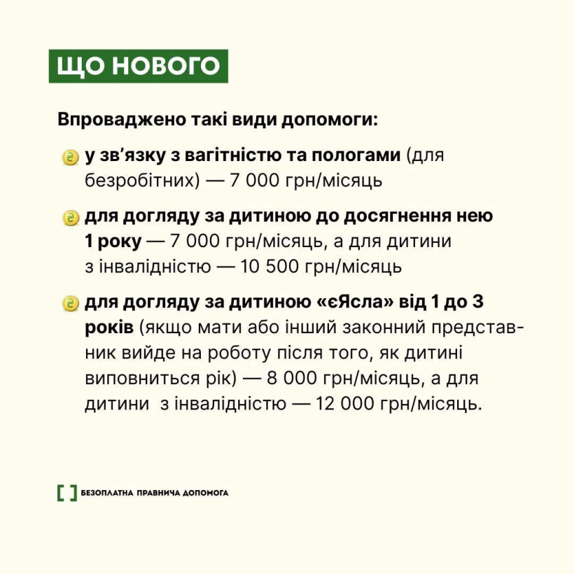 Окрім того, запроваджуються нові види державної допомоги сім’ям з дітьми та продовжують діяти вже відомі виплати на дитину. Оформити їх може один із батьків дитини або опікун, з яким дитина постійно проживає.