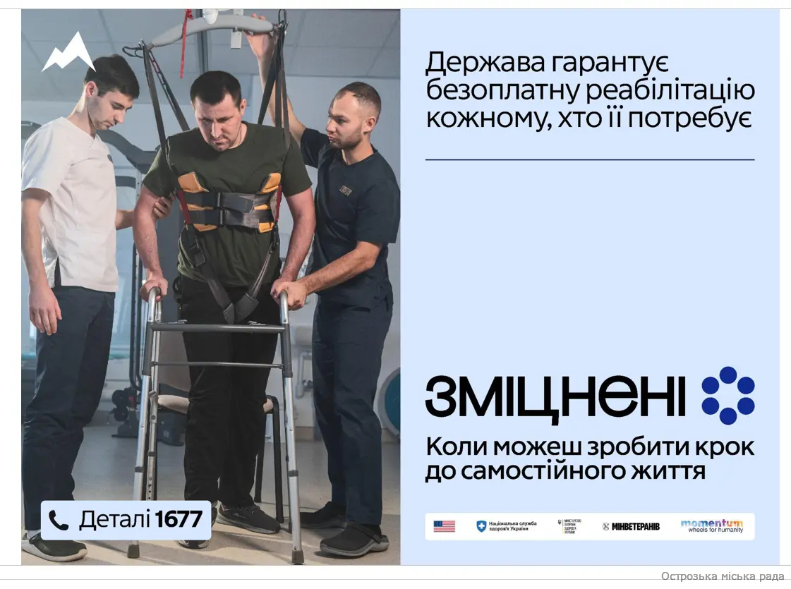 Національна служба здоров’я України в партнерстві з Міністерством охорони здоров’я, Міністерством у справах ветеранів, за підтримки проєкту Rehab4U запустила інформаційну кампанію «Зміцнені», присвячену безоплатній реабілітації.